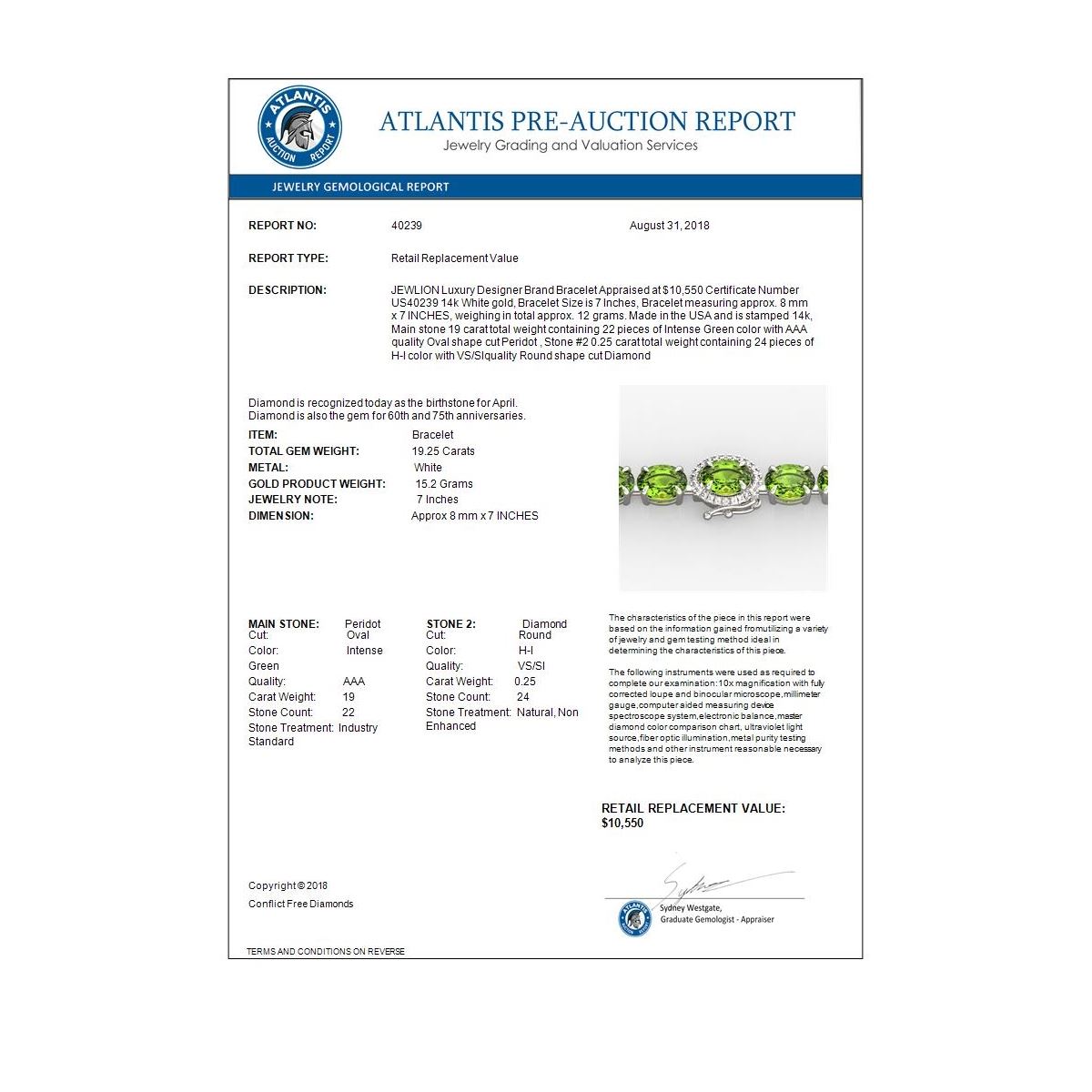 REF-147Y3X - SKU:40239 ---- 19.25 ctw Peridot & VS/SI Diamond Bracelet 14K White Gold