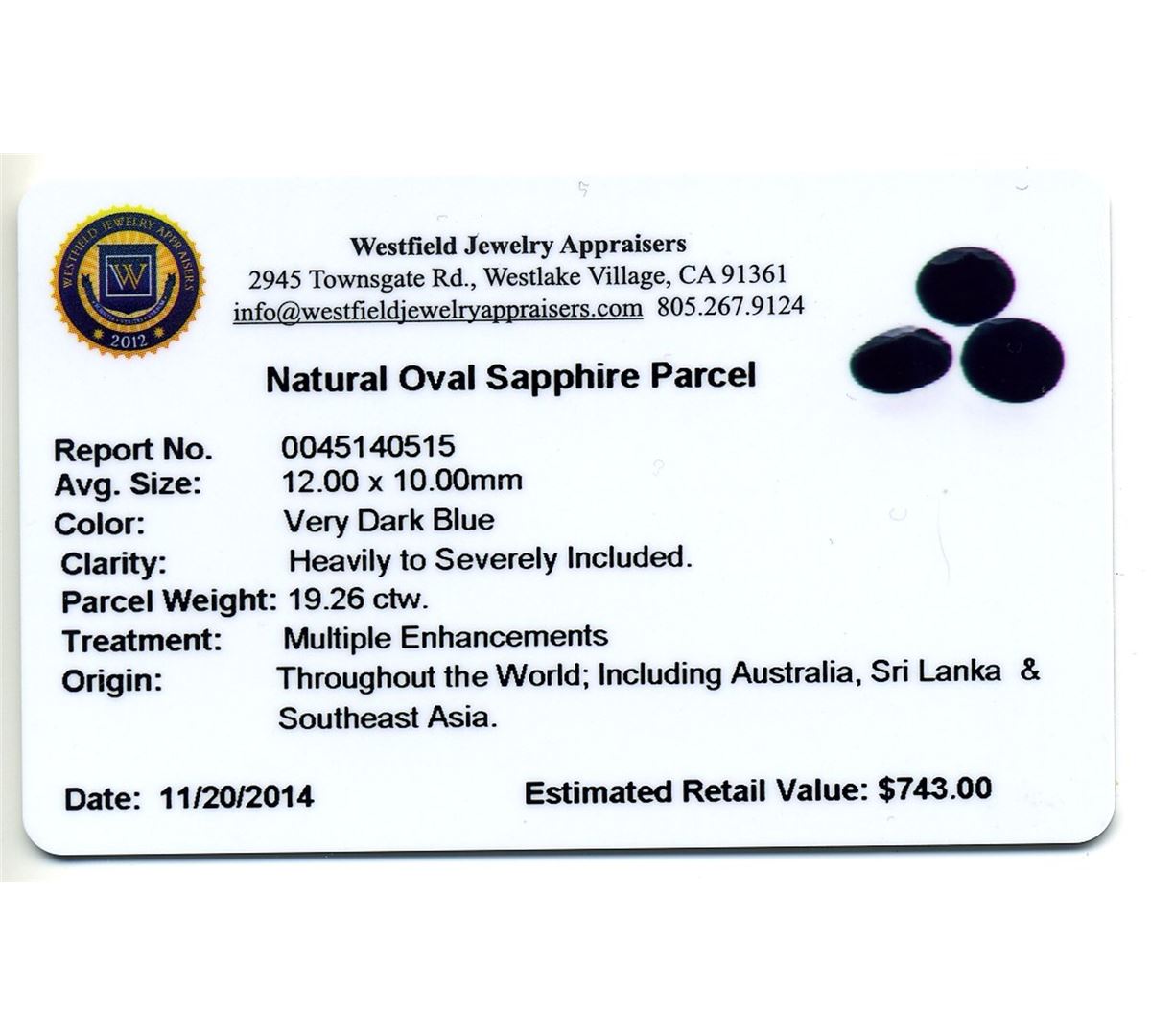 19.26ctw. Natural Oval Sapphire Parcel. Westfield Appraised at $743.00.