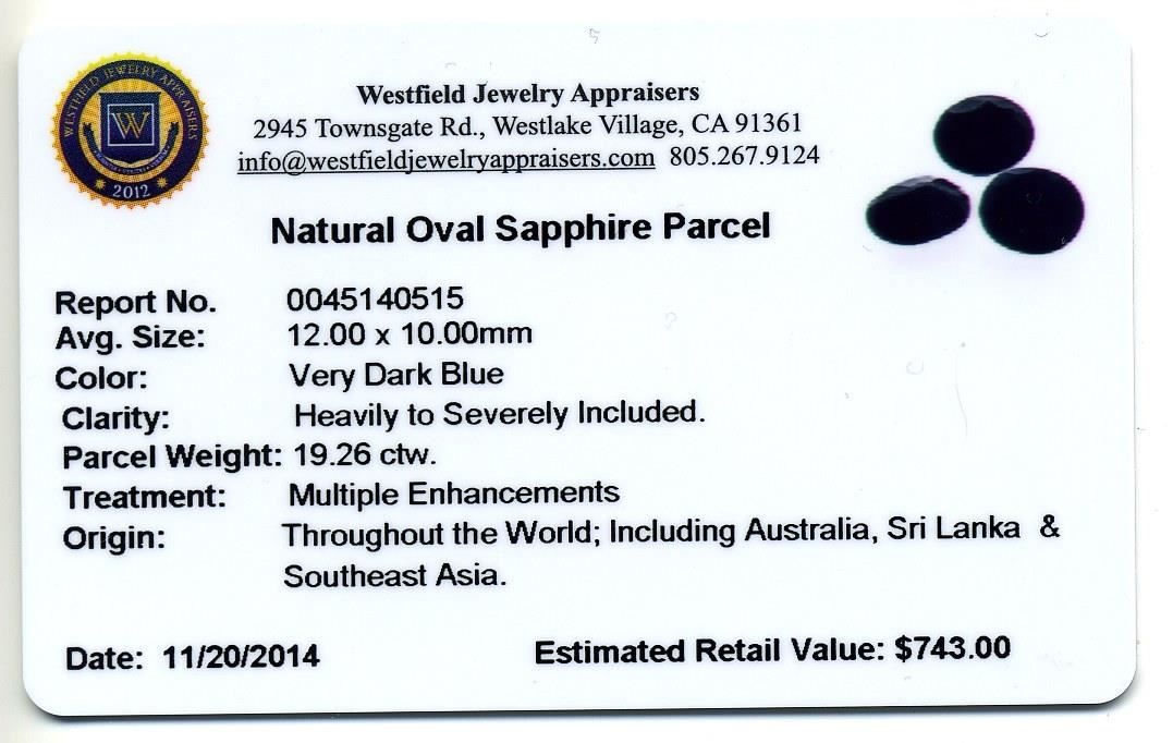 19.26ctw. Natural Oval Sapphire Parcel. Westfield Appraised at $743.00.