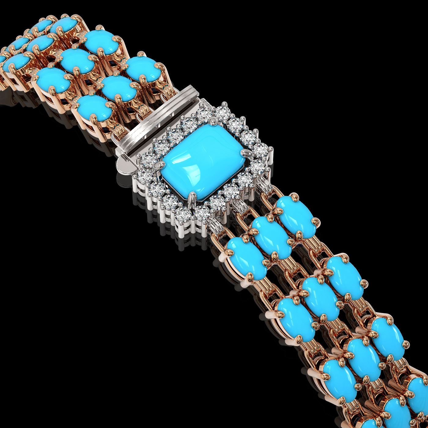 REF-318G2W - SKU: 45987 ---- 19.27 ctw Turquoise & Diamond Bracelet 14K Rose Gold