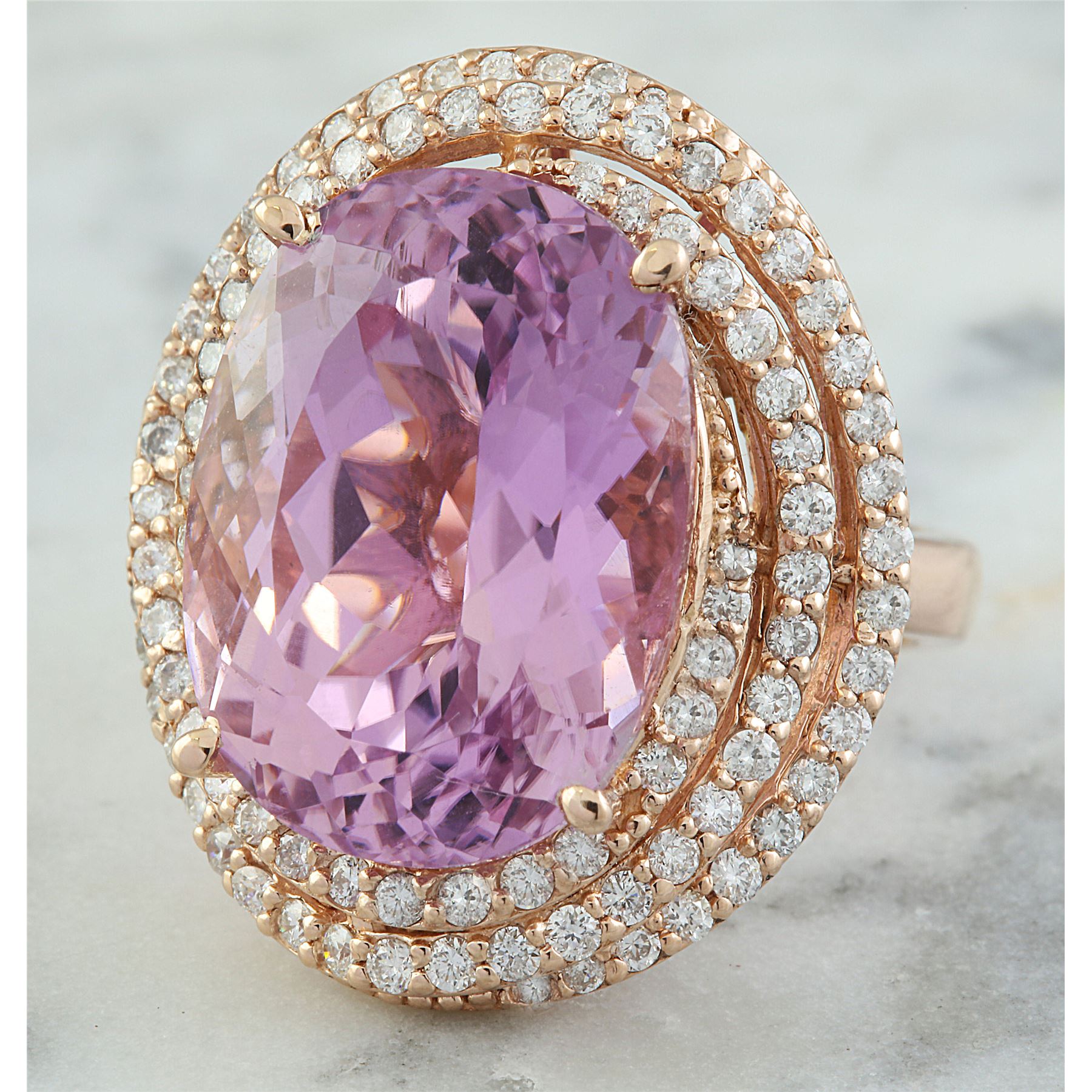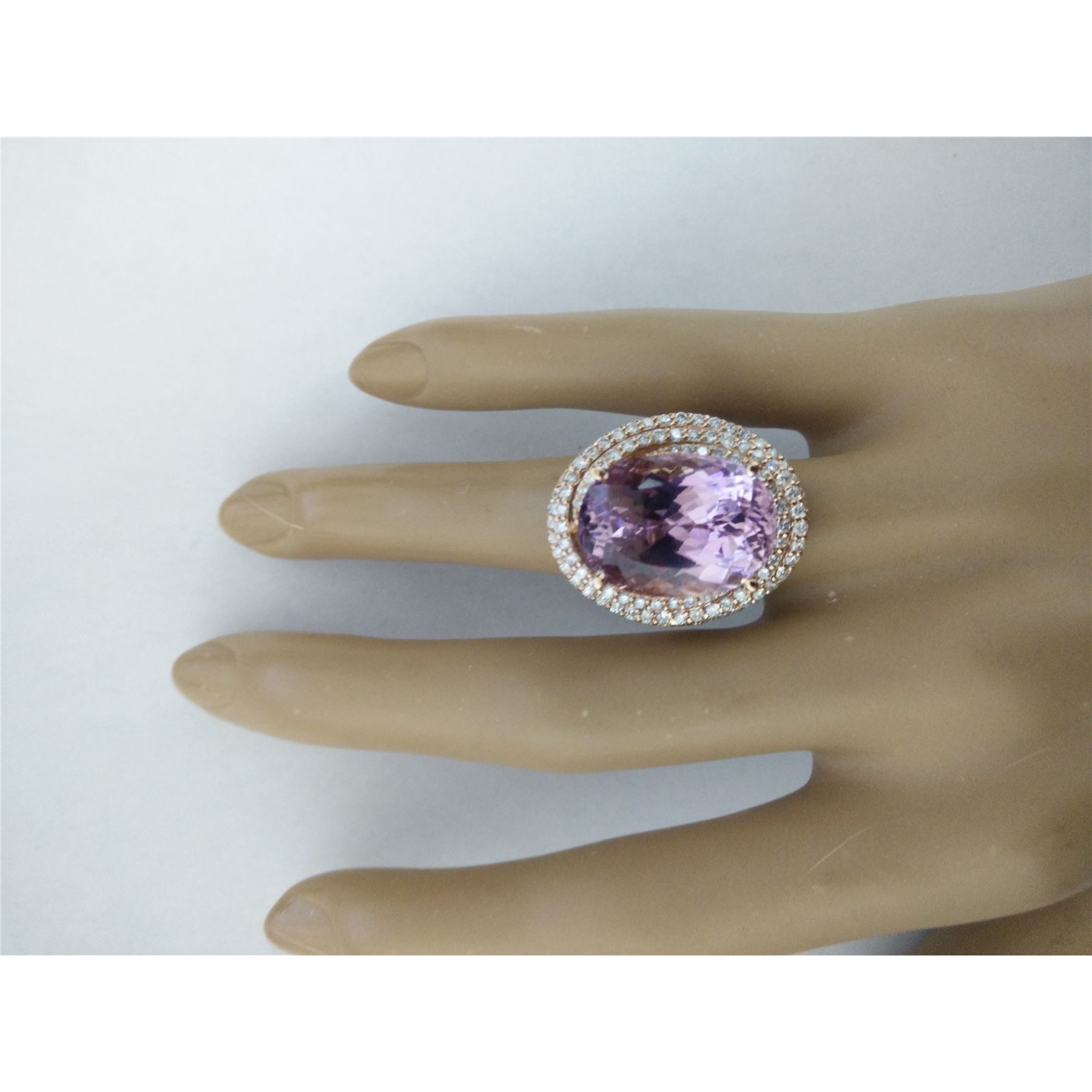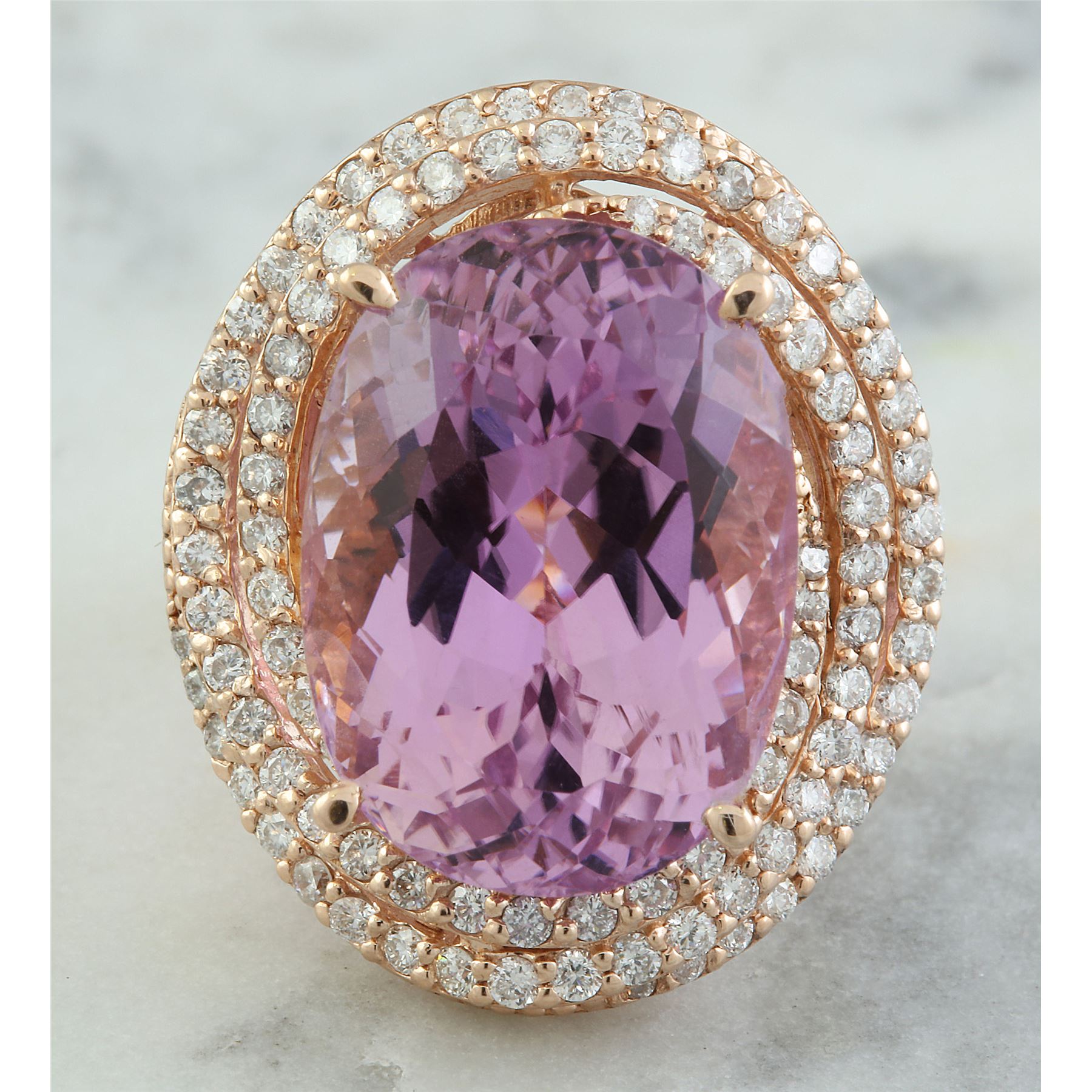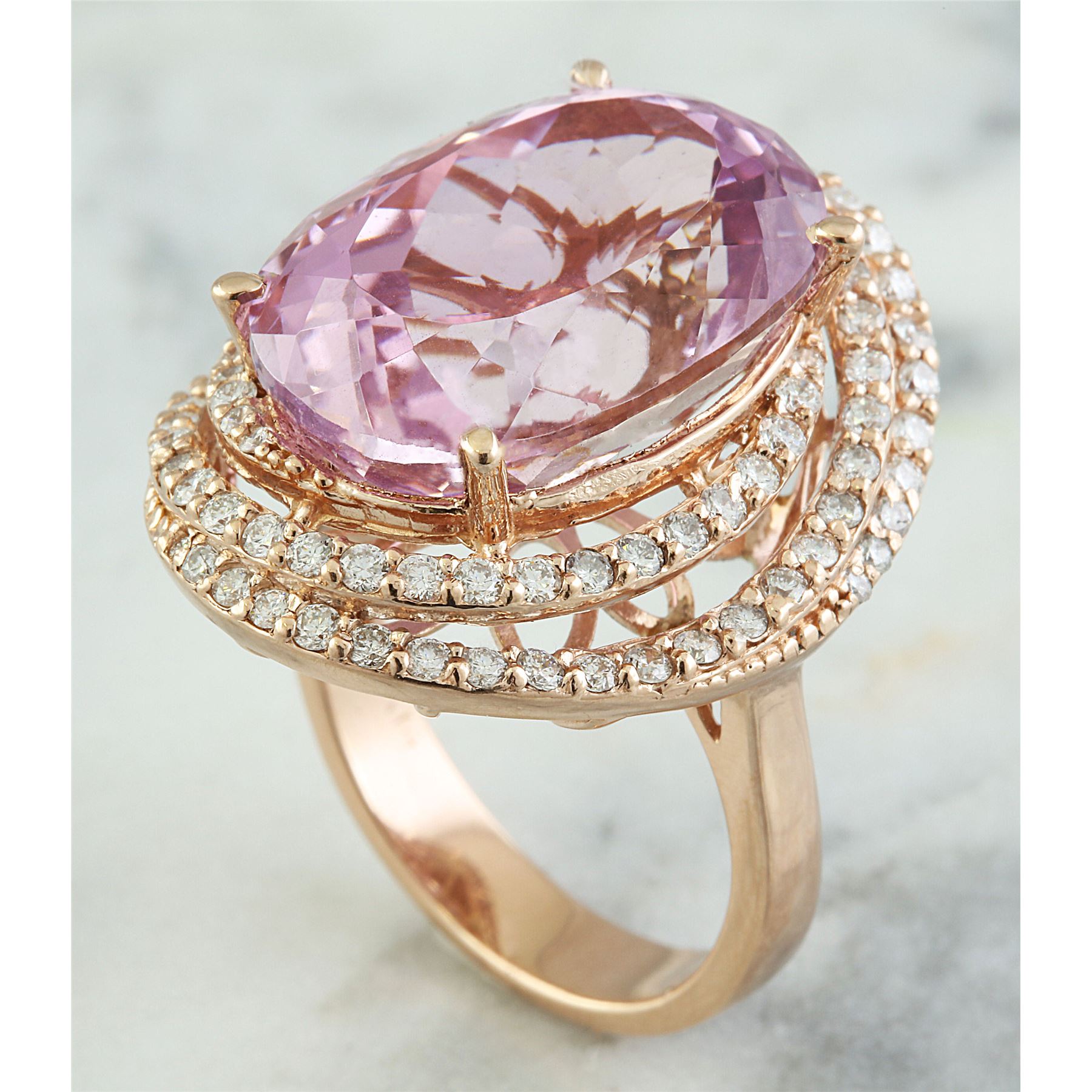 19.30 CTW Kunzite 18K Rose Gold Diamond Ring