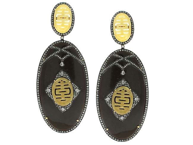 19.33 TCW BAKELITE, JADE & DIAMOND EARRING 18K GOLD