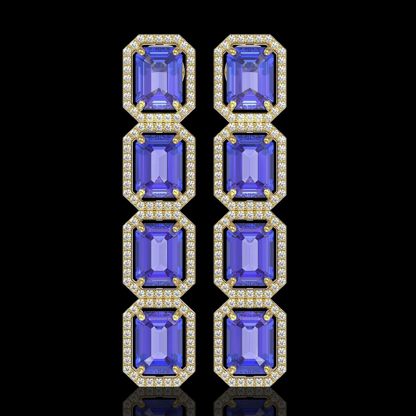 REF-418G5W - SKU: 41581 ---- 19.39 ctw Tanzanite & Diamond Micro Pave Halo Earrings 10k Yellow Gold