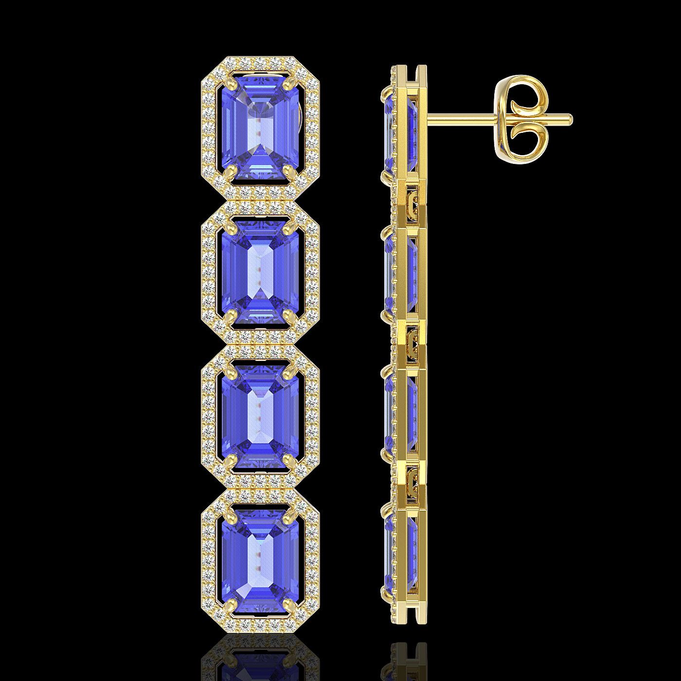 REF-418G5W - SKU: 41581 ---- 19.39 ctw Tanzanite & Diamond Micro Pave Halo Earrings 10k Yellow Gold