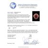 One electronically tested 18KT yellow and white gold ladies cast & assembled ruby and diamond ring. The featured ruby cabochon is set within an 18K white gold diamond bezel and tiered 18K yellow gold ruby bezel supported by decorative lattice shoulders, completed by a two millimeter wide band. Bright and patterned finish. Condition is good. Containing: One prong set oval cabochon cut natural ruby, measuring 14.20 x 10.00 x 11.20mm, approximate weight of 17.50ct., clarity is heavily included, type II, medium dark, very slightly brownish, red color, (GIA R 6/3), cut is good. Transmitting light somewhat diffusely, translucent. Naturally occurring internal & external characteristics are present. No indications of heating. Colored Stone Grading Report attached. Graded in the setting. Eighteen prong set round brilliant cut diamonds, measuring 2.30 - 2.20 x 1.35mm (depth est.) approximate total weight of 18 Stones = 0.79ct. Graded in the setting. Clarity: VS-2 to SI-2. Color: G - I Eighteen prong set round mixed cut natural rubies, measuring 2.70 - 2.60 x 1.72 mm, approximate total weight of 1.90ct., clarity is moderately included, type II, medium dark, very slightly brownish, red color, (GIA R 6/3), cut is good. Transmitting light with a minimum of distortion, transparent. Naturally occurring internal & external characteristics are present. Measurements & the color grade are an average for the group. Graded in the setting. Total Weight of Colored Stones 19.40ct. Total Weight of Diamonds 0.79ct. Total Weight of Ring 10.66gm. AIG Appraised at $15,695.00.