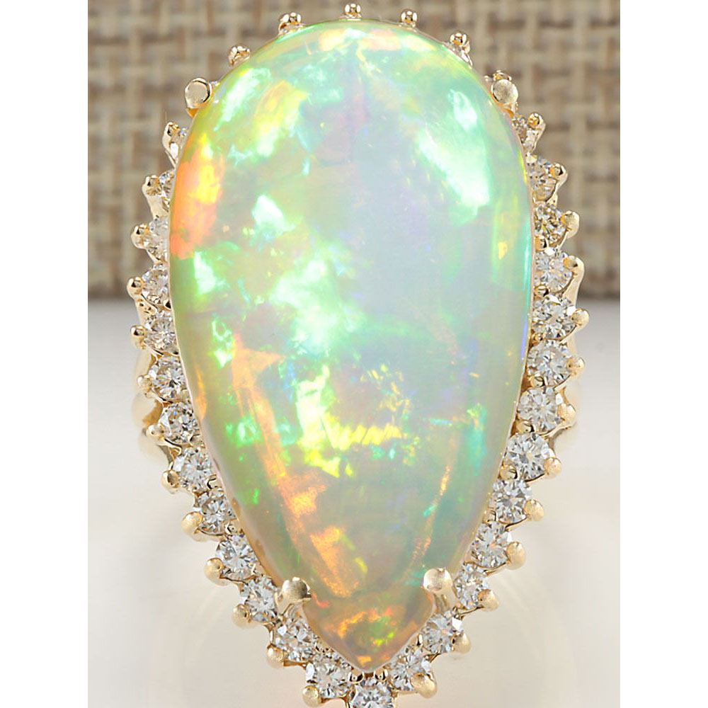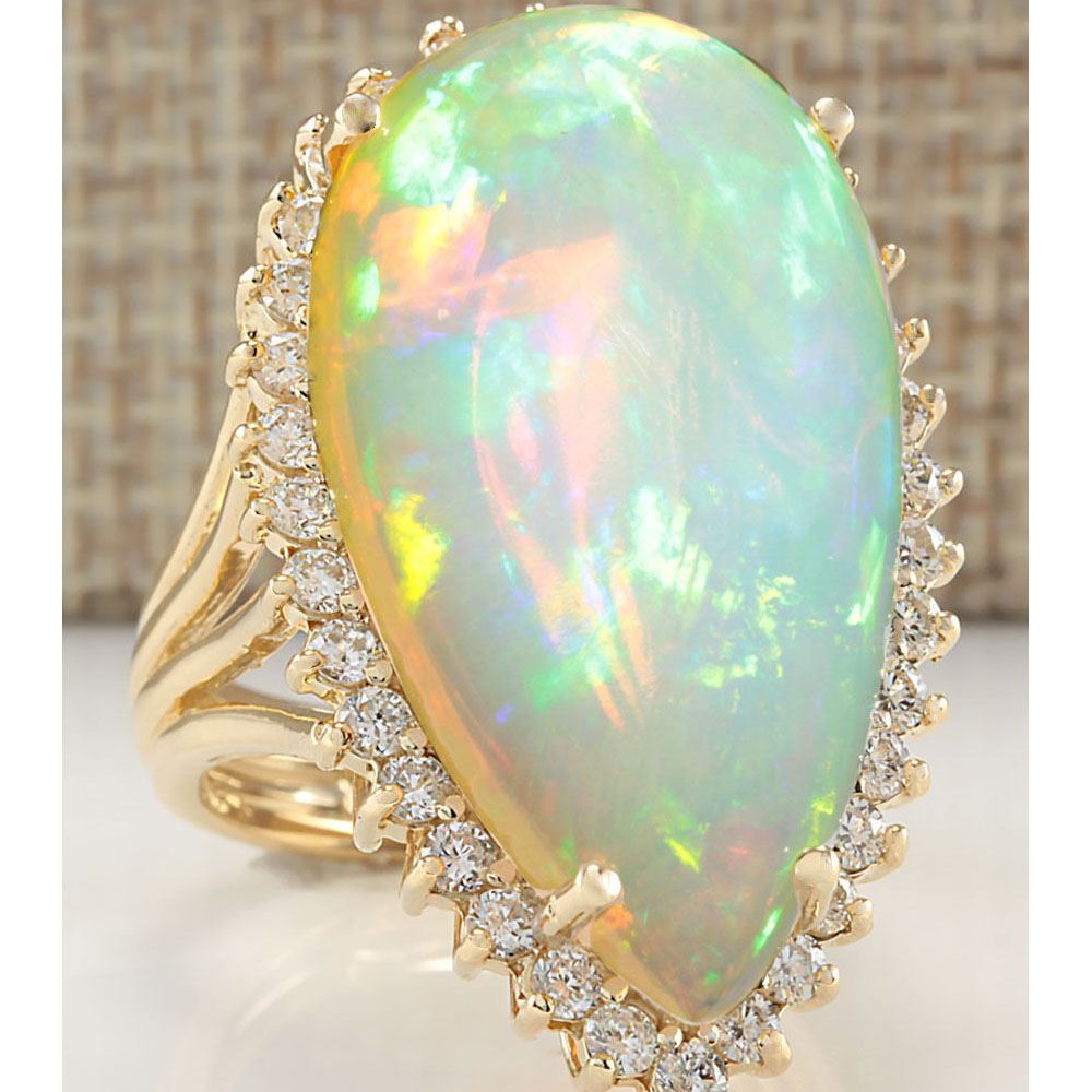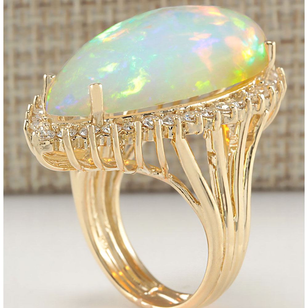 19.42 CTW Natural Opal And Diamond Ring In 18K Yellow Gold