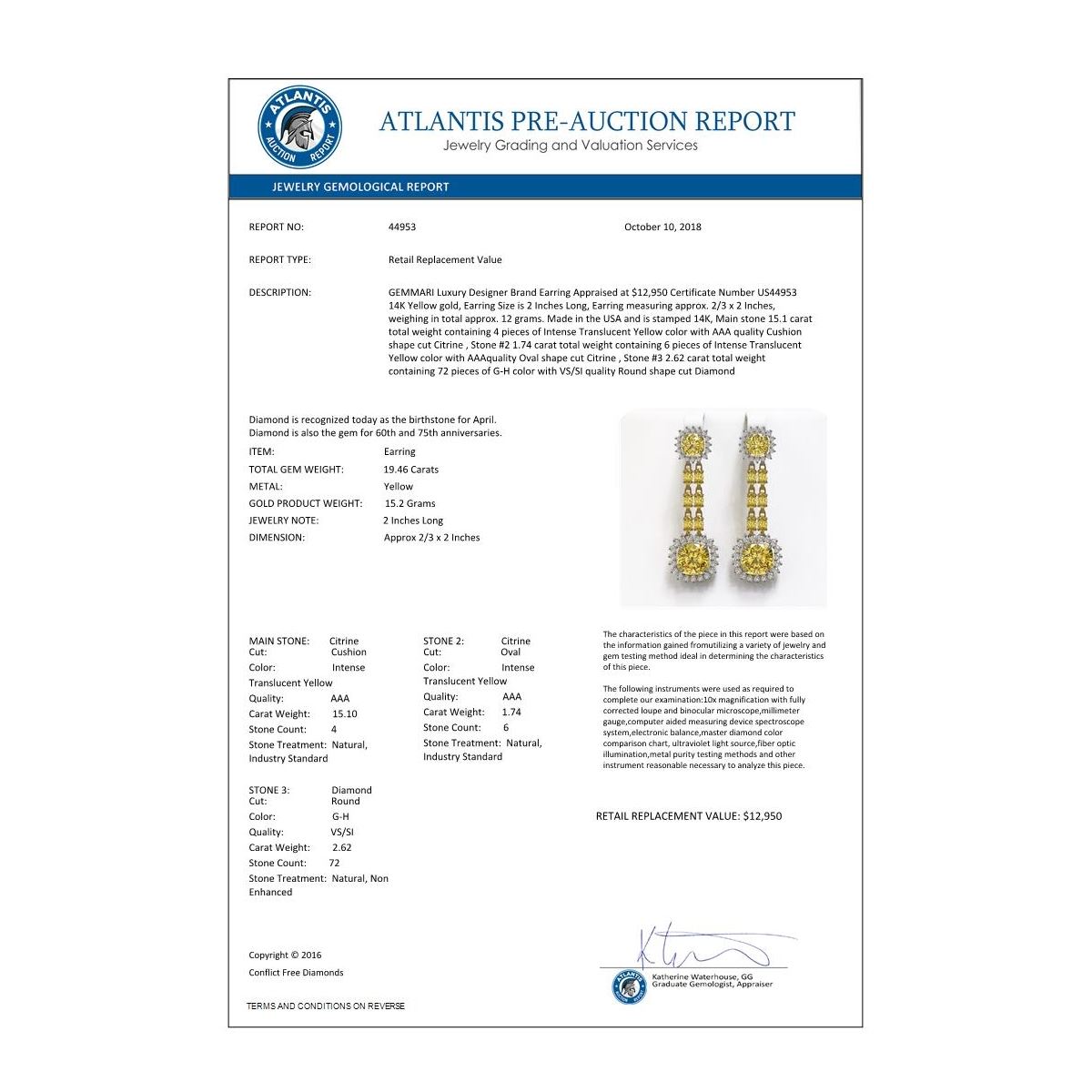 19.46 ctw Citrine & Diamond Earrings 14K Yellow Gold