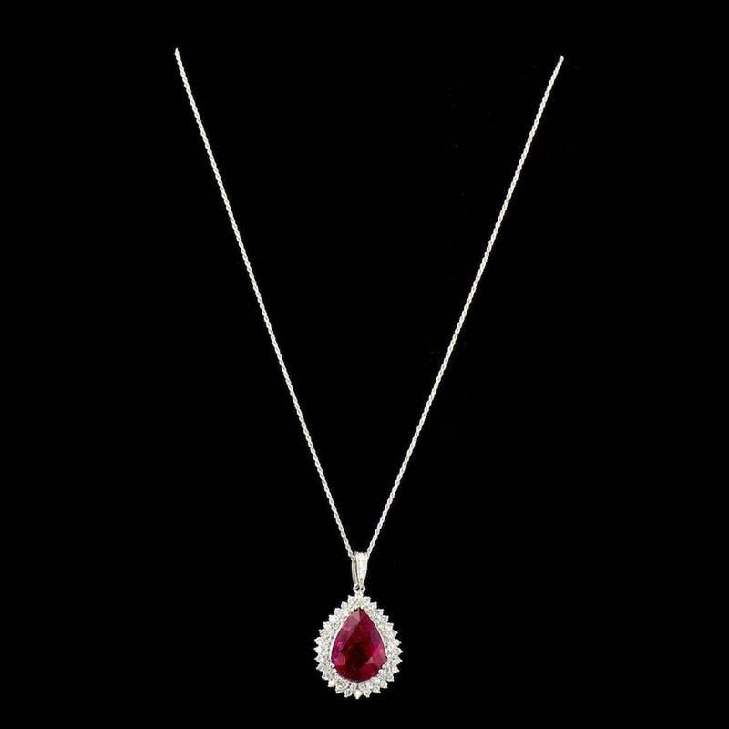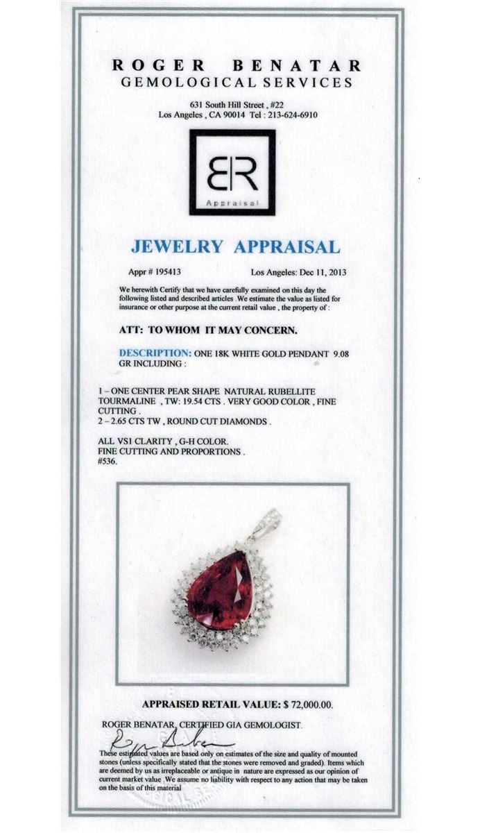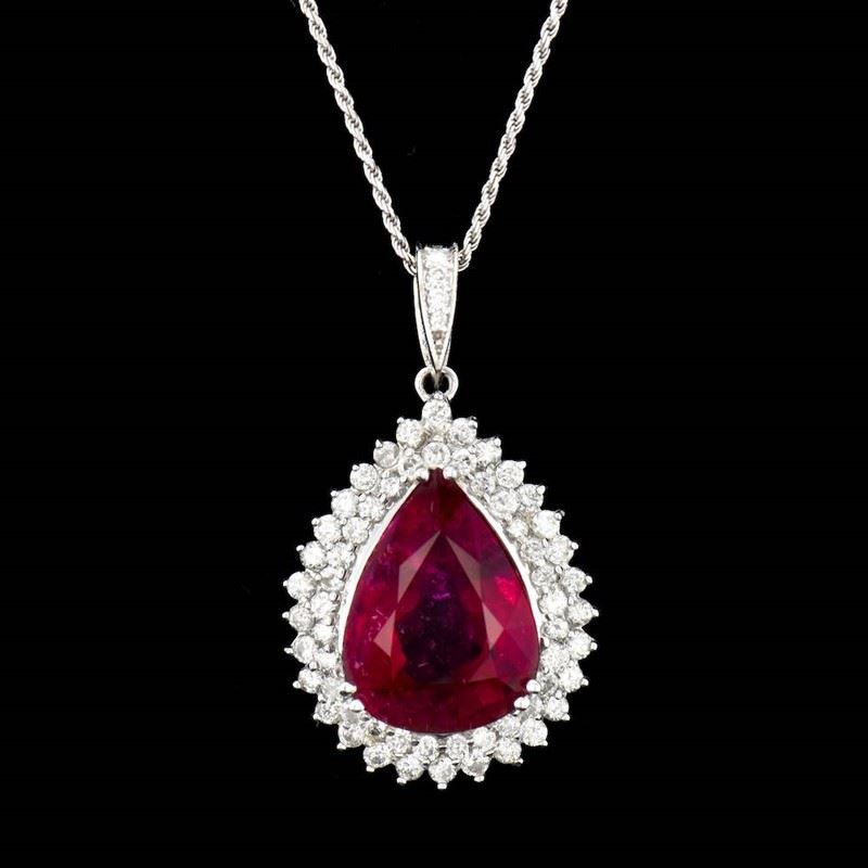 18K WHITE GOLD NATURAL RUBELLITE PENDANT:9.08 GRAMS/DIAMOND:2.65CT/RUBELLITE:19.54CT/#GVP1129