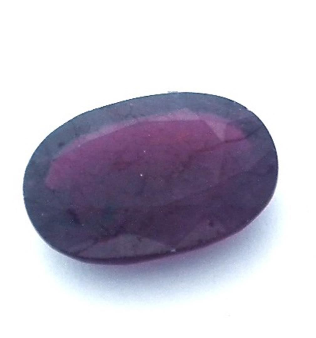 One oval mixed cut natural ruby, measuring 20.00 x 15.00 x 5.50mm, exact weight 19.56ct., clarity is heavily included, type II, dark, very slightly brownish, slightly purplish red color, (GIA slpR 7/3), cut is good. Transmitting light somewhat diffusely, transparent to translucent. Naturally occurring internal & external characteristics are present. Indications of laboratory high temperature heat treatment, with glass & flux additives. Ruby has a low tolerance to rhodium plating, repolishing the surface, & ultrasonic cleaning. Westfield Appraised at $2,635.00.