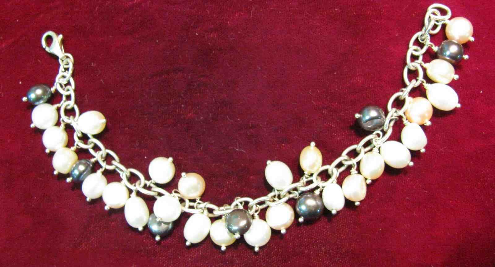 19. 6 1/2" Sterling Silver Bracelet with Black & White Pearls. Originally retailed in the $300 range.