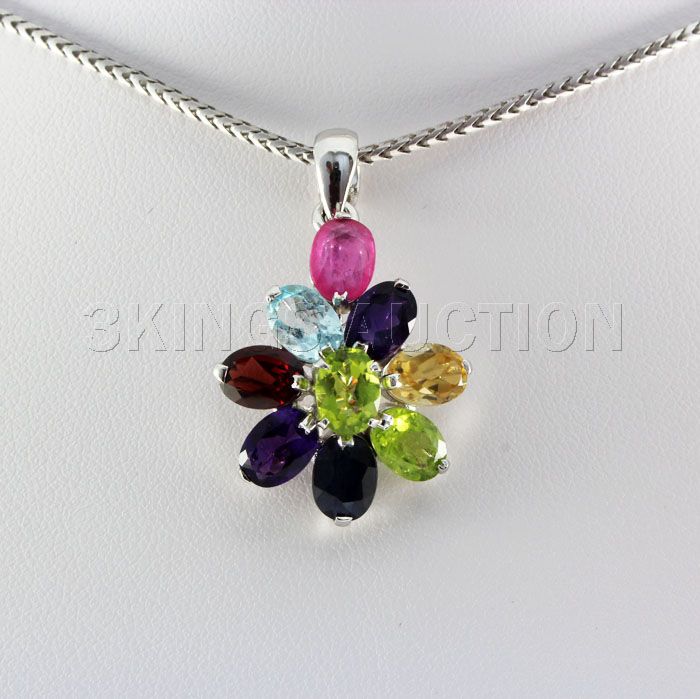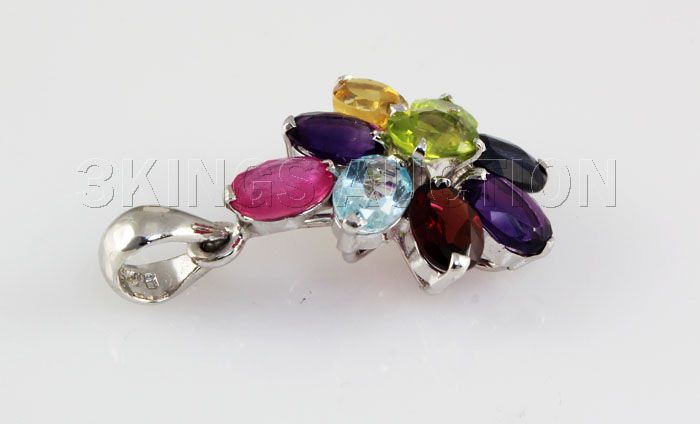 19.61CTW Multi-color Precious Stone Silver Pendant **|**|** 7x5mm Flower Cluster of Multi-color Precious Stone Silver Pendant; ctw: 8.86; stone count: 9; gram weight: 2.15 ; MSRP: $900