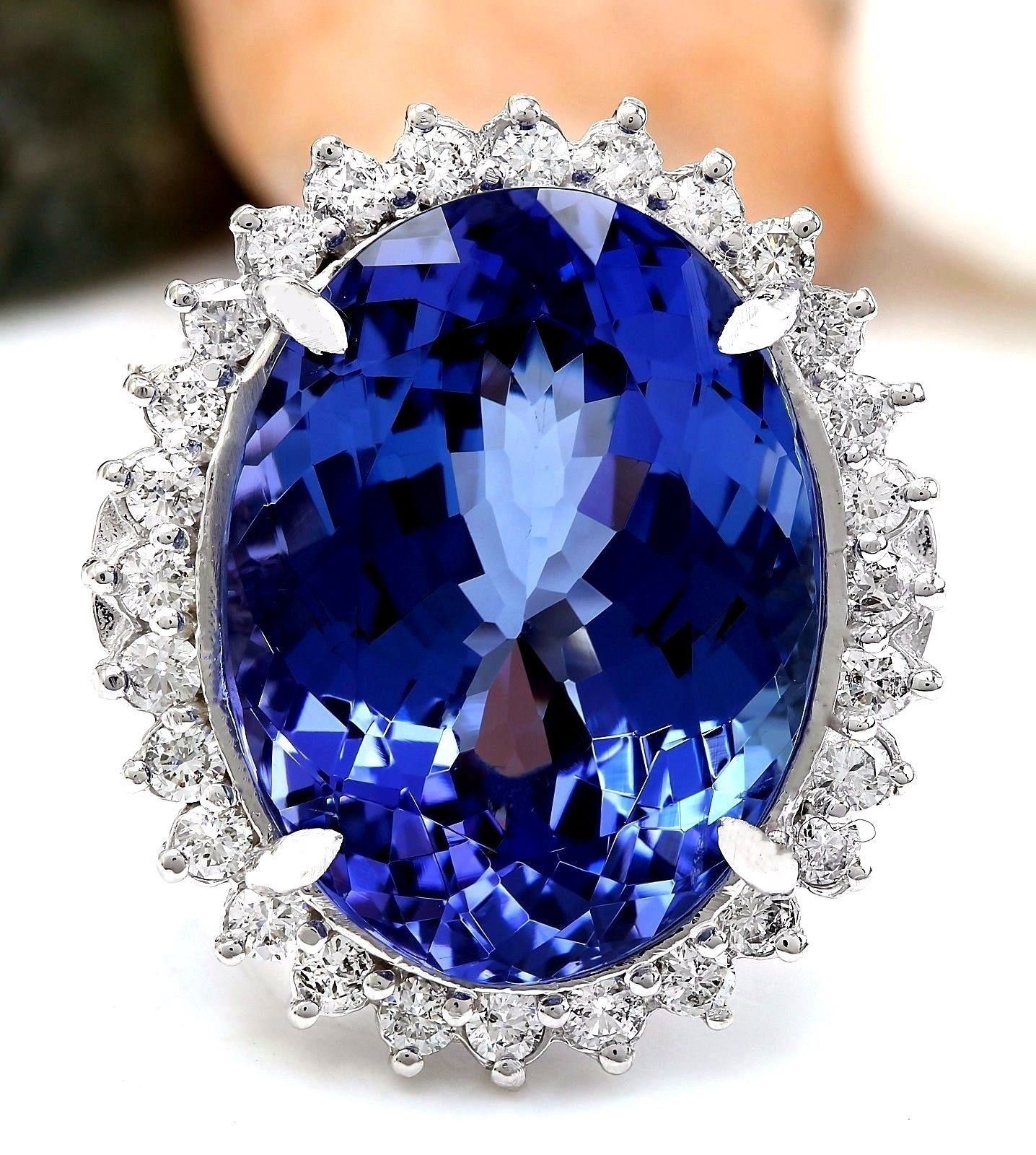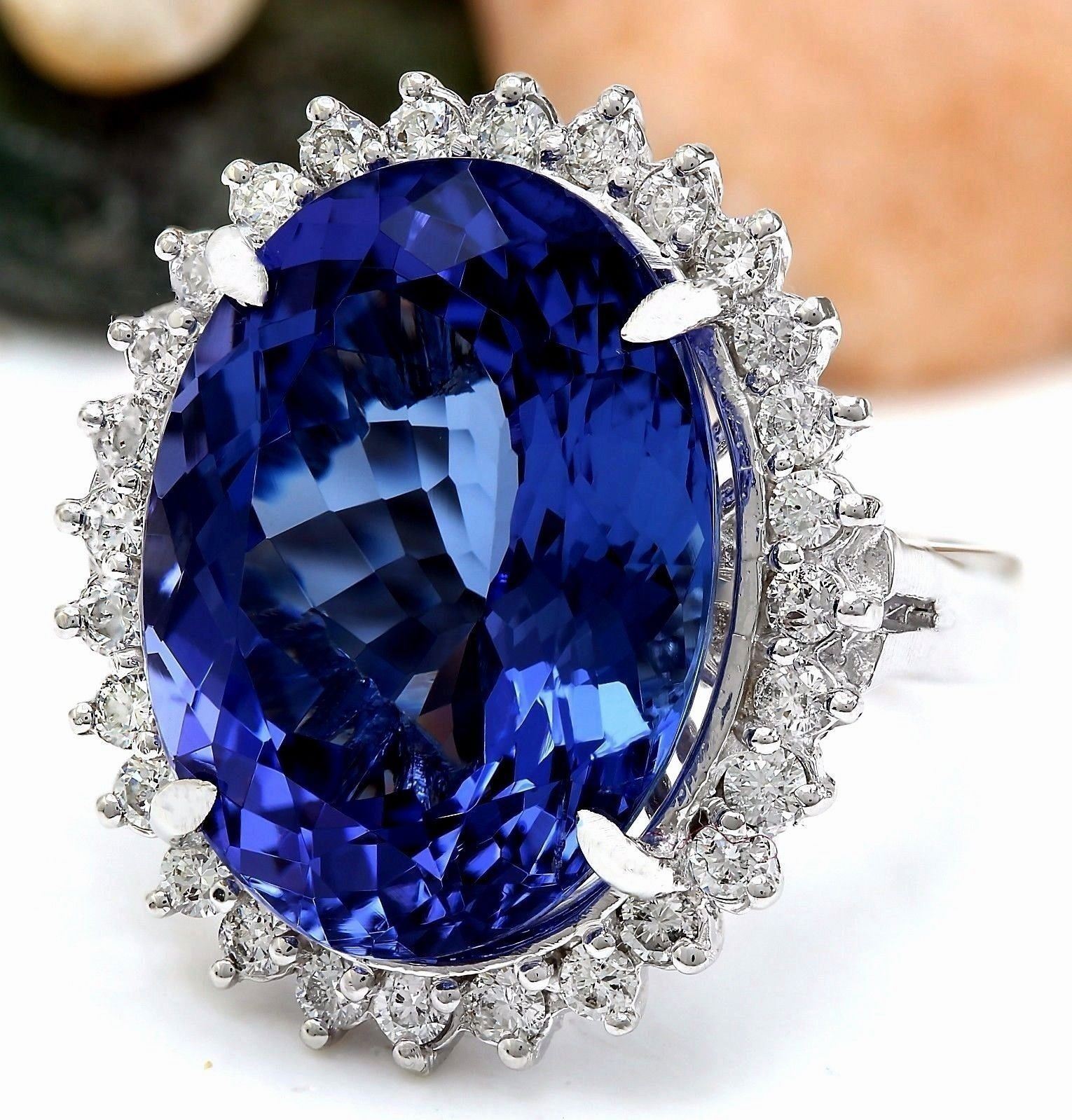 19.64 Carat Natural Tanzanite 18K Solid White Gold Diamond Ring