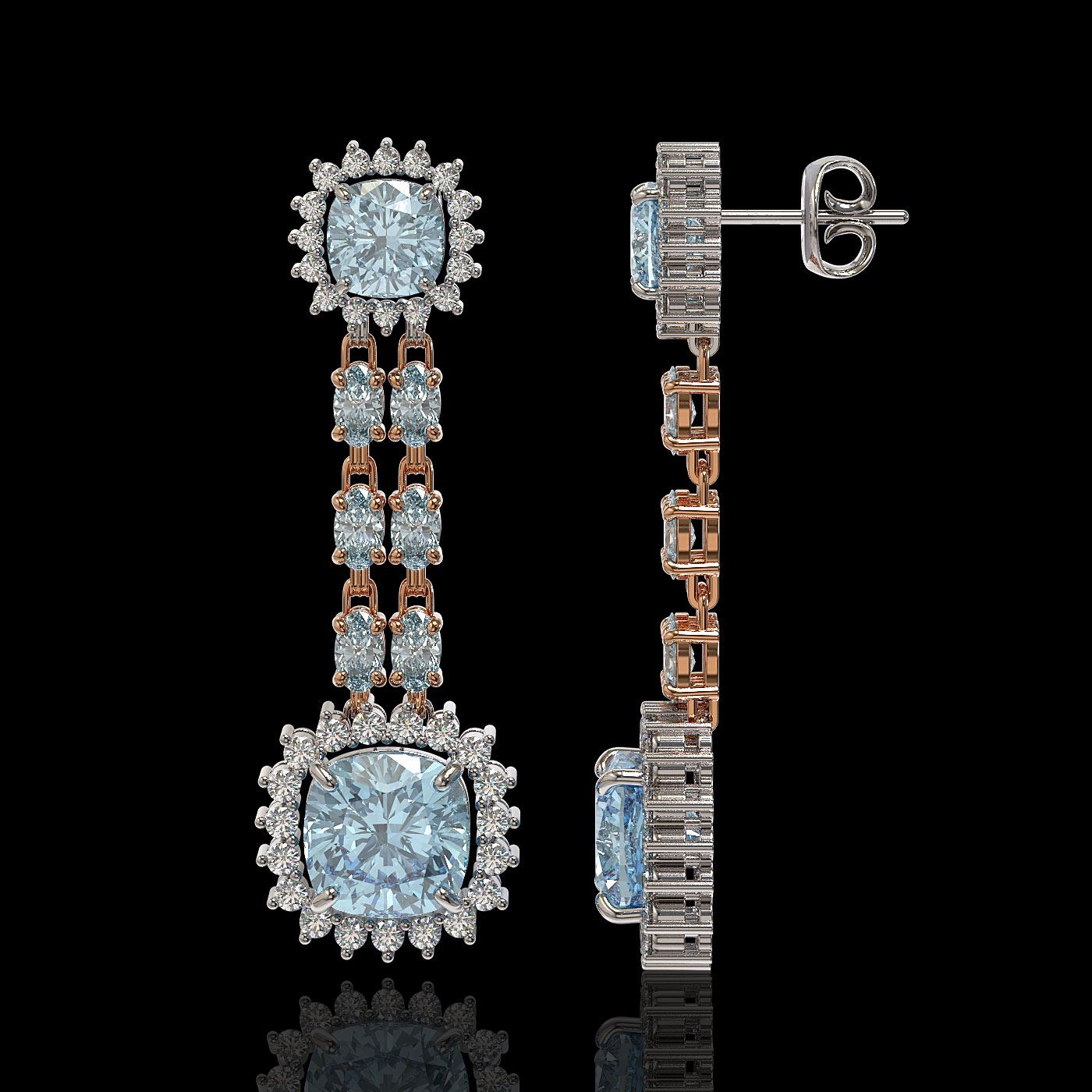 REF-222K5Y - SKU: 44940 ---- 19.64 ctw Sky Topaz & Diamond Earrings 14K Rose Gold