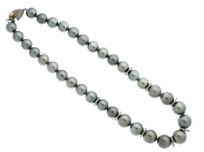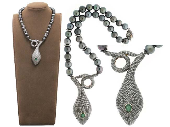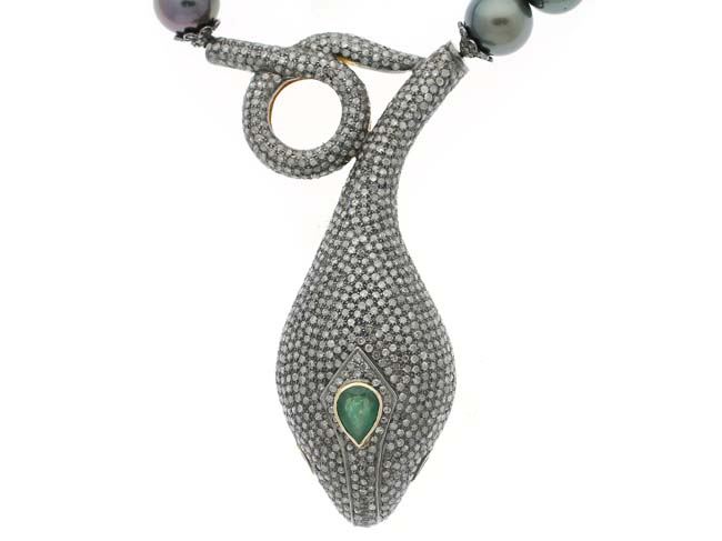 REAL TAHITIANPEARL AND DIAMOND SNAKE NECKLACE/Diamond 1 TCW:17.53/Diamond Color & Clarity:G-H/SI1-SI3/Diamond 2 TCW:/Gemstone Count 1: 34 PCSPEARL /Gemstone 1 TCW:2.15/Pendant Dimension:/Chain Length:/Gemstone 2 TCW:/Gemstone 3 TCW:xxx/Metal Type 1:xxx/Gram Weight:/Metal Type 2:/Weight Gram:xxx&/Weight Gram:/Gross Weight:
