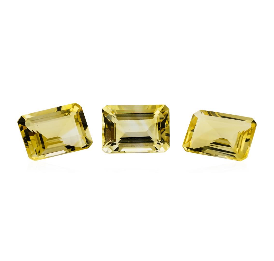 One natural emerald cut citrine quartz parcel of three with an exact weight of 19.69ctw., clarity is eye clean, slightly yellowish orange, medium to medium light. Gemological Appraisals Services estimates the retail value at $590.7 GAS Appraised.