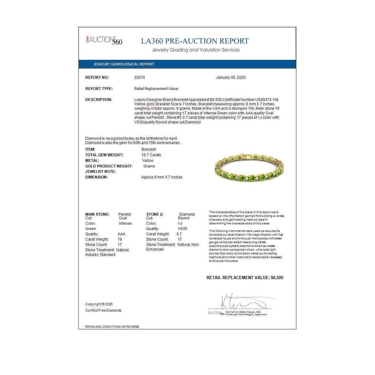 REF-118Y5X - SKU: 29374 ---- 19.7 ctw Peridot & VS/SI Diamond Eternity Bracelet 10k Yellow Gold