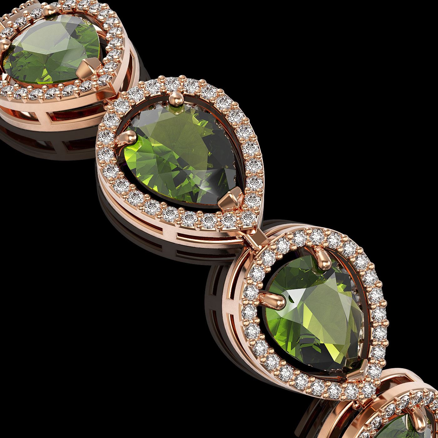 REF-361K3Y - SKU: 41256 ---- 19.7 ctw Tourmaline & Diamond Micro Pave Halo Bracelet 10k Rose Gold