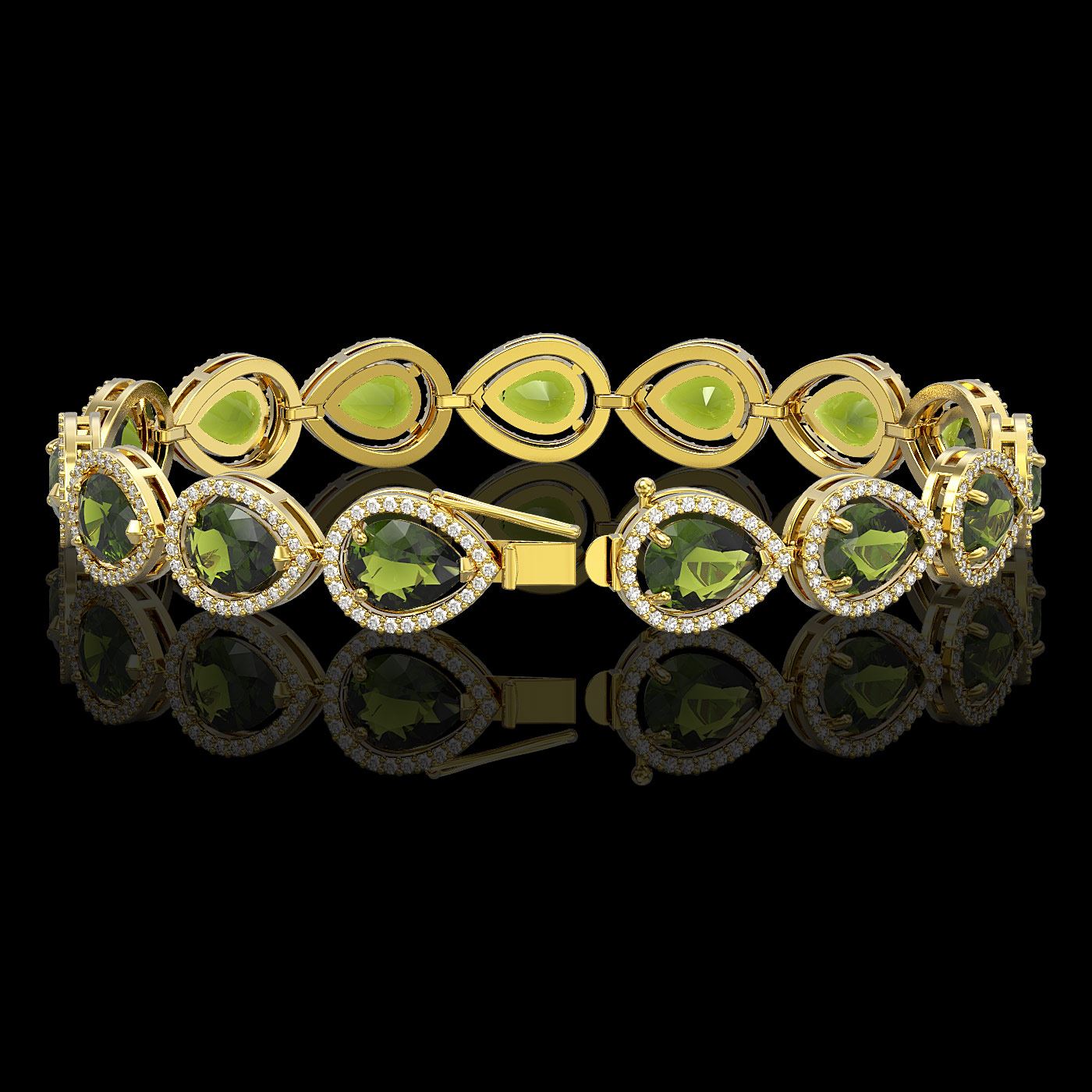 REF-361X3A - SKU: 41257 ---- 19.7 ctw Tourmaline & Diamond Micro Pave Halo Bracelet 10k Yellow Gold