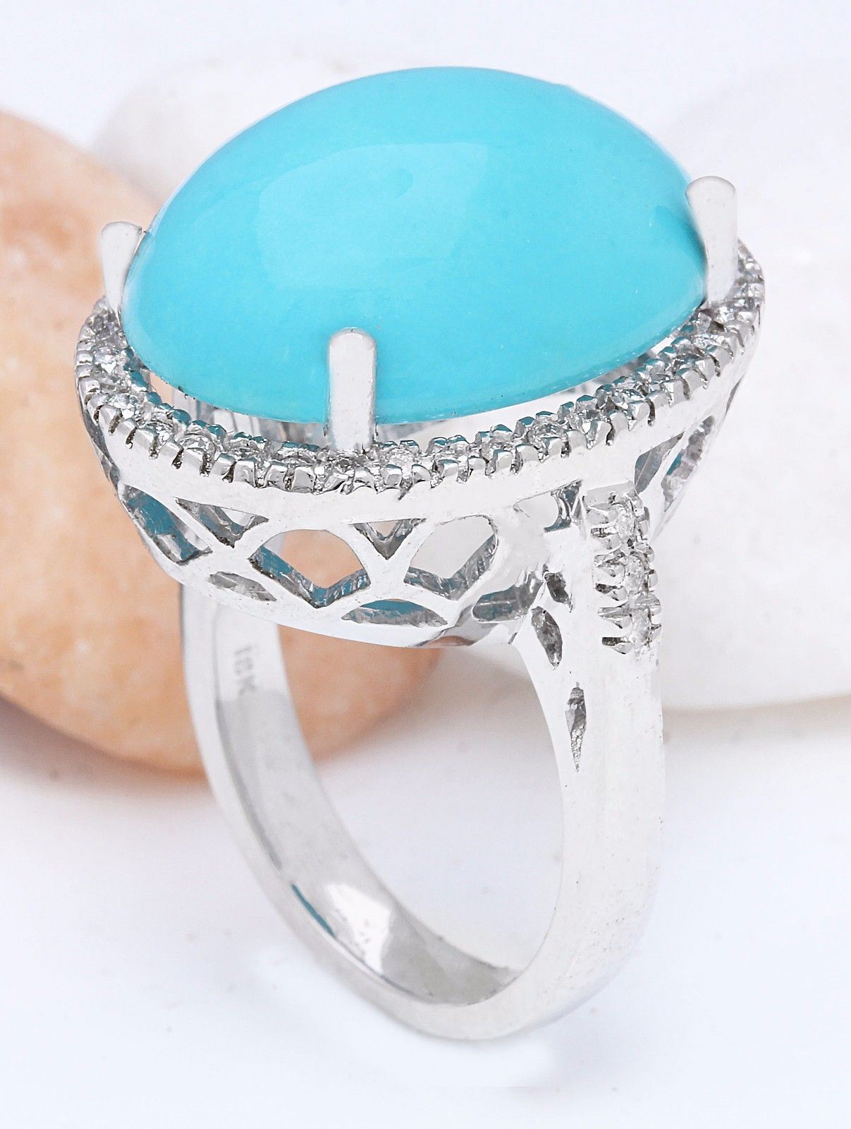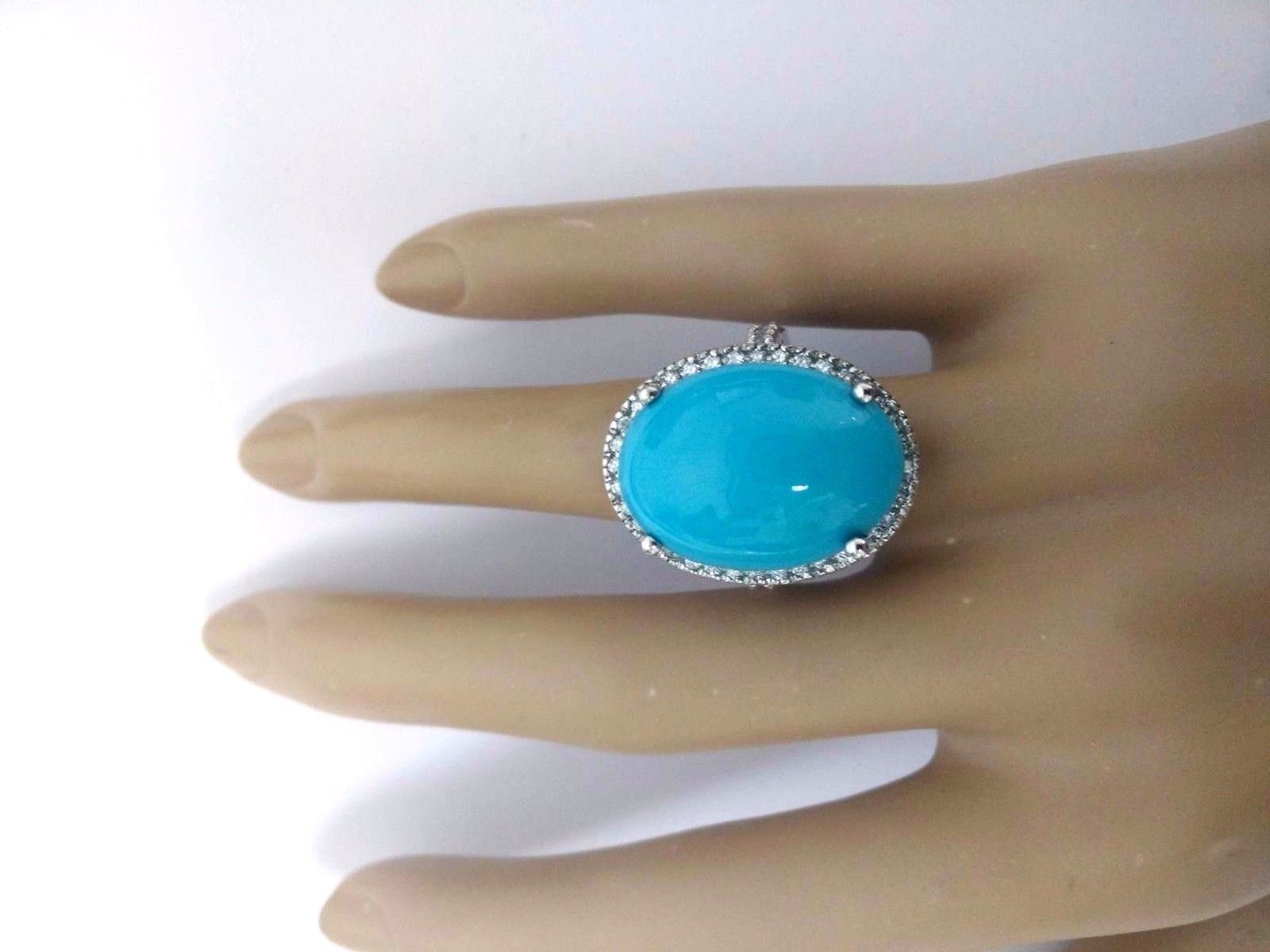 19.72 Carat Natural Turquoise 14K Solid White Gold Diamond Ring