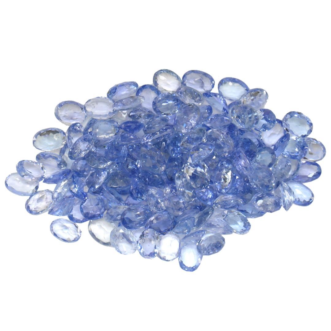 Ninety oval mixed cut natural tanzanites, measuring 4.00 x 3.00 x 1.95mm, exact total weight 19.72ct., clarity is eye clean, type I, medium dark, very slightly grayish, bluish violet color, (GIA bV 6/3), cut is good. Transmitting light with no distortion, transparent. Color grade is an average for the group. Graded in the setting. Tanzanite is a very rare gemstone that is only found in the country of Tanzania. Originally discovered in 1967. Tiffany & Company, named the stone Tanzanite. It is found in the Usumburu Mountains that border the Umba Valley of northern Tanzania. Tanzanite occurs in gray, brown, violet, blue, reddish-purple, & green. The gem is interesting because of its exceptional pleochroism. Rotated in different directions a tanzanite will exhibit multiple changes of color. Tanzanite has a low tolerance to ultrasonic cleaning, and should not be cleaned using this method. Westfield Appraised at $1,900.00.