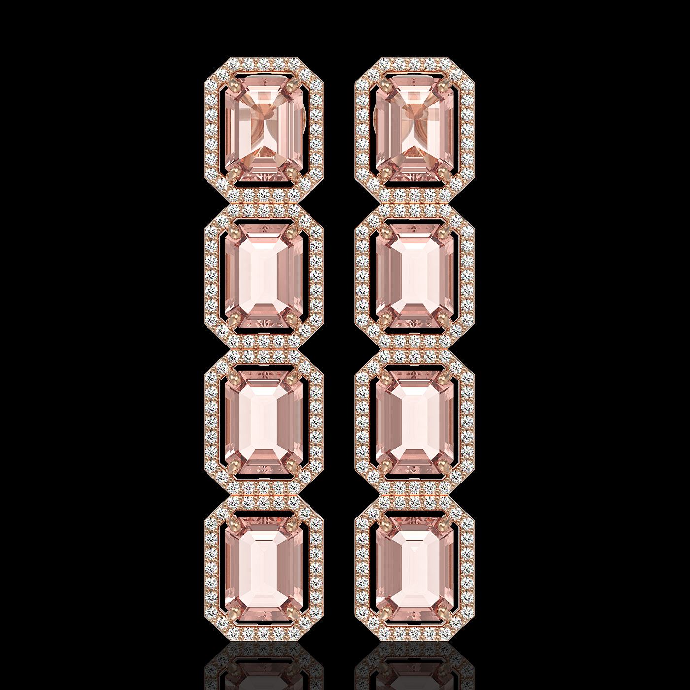 REF-424R8K - SKU: 41583 ---- 19.81 ctw Morganite & Diamond Micro Pave Halo Earrings 10k Rose Gold