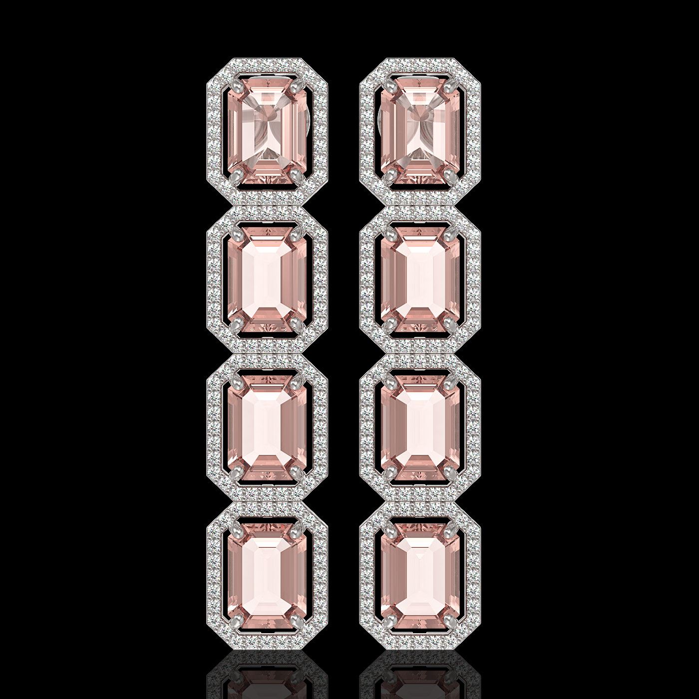 REF-424W8H - SKU: 41582 ---- 19.81 ctw Morganite & Diamond Micro Pave Halo Earrings 10k White Gold