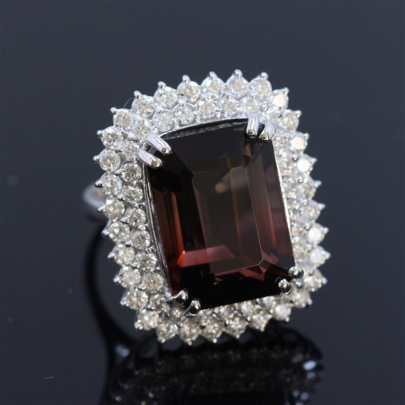 14K White Gold Bi-Color Tourmaline Ring:14.05 Grams / Bi-Color Tourmaline :19.83ct / Diamond:1.72ct / #GVR1556
