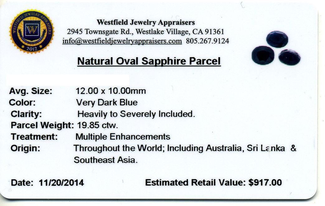 19.85cts. Natural Oval Sapphire Parcel Westfield Appraised at $917.00.