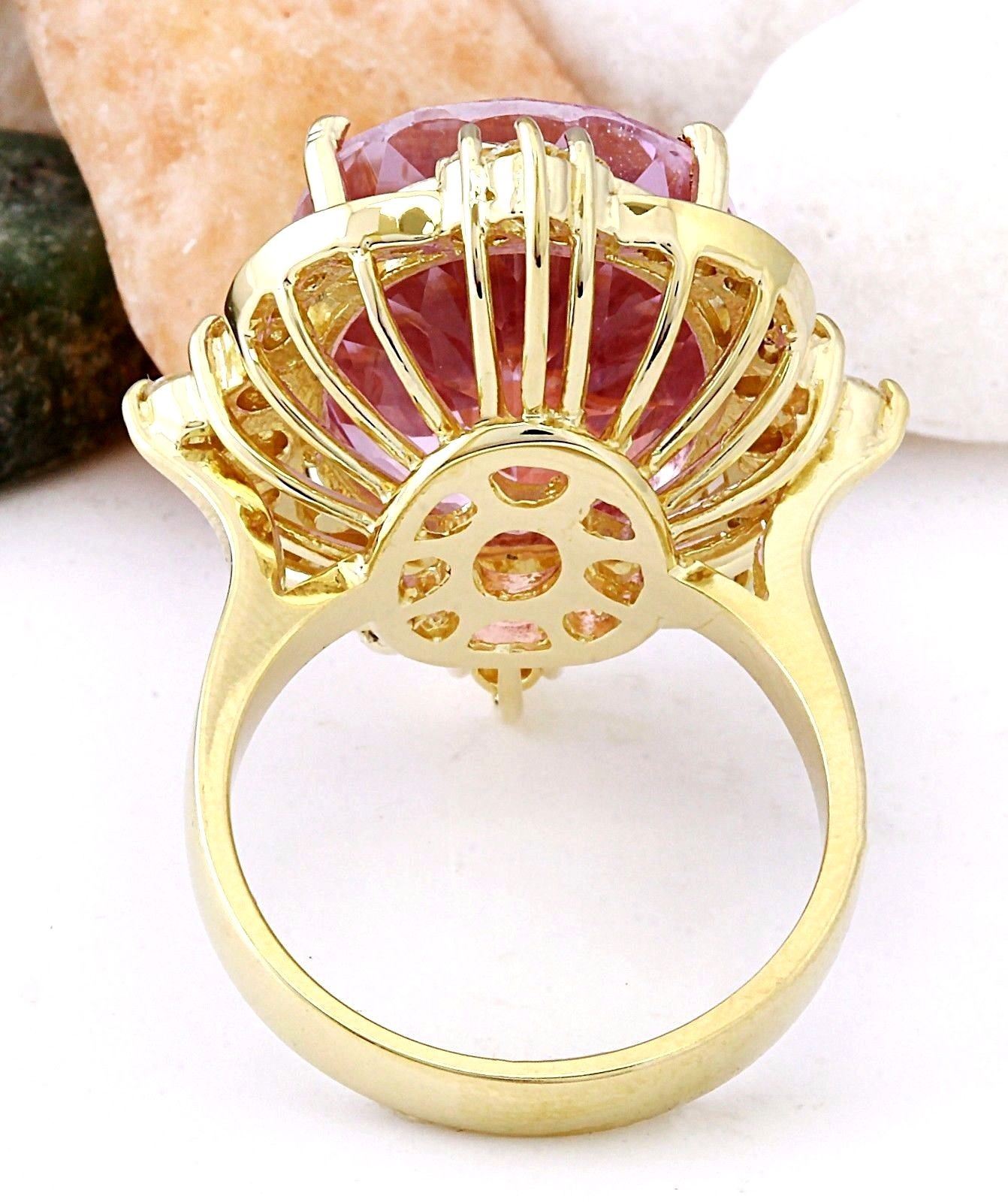 19.89 CTW Natural Kunzite 18K Solid Yellow Gold Diamond Ring