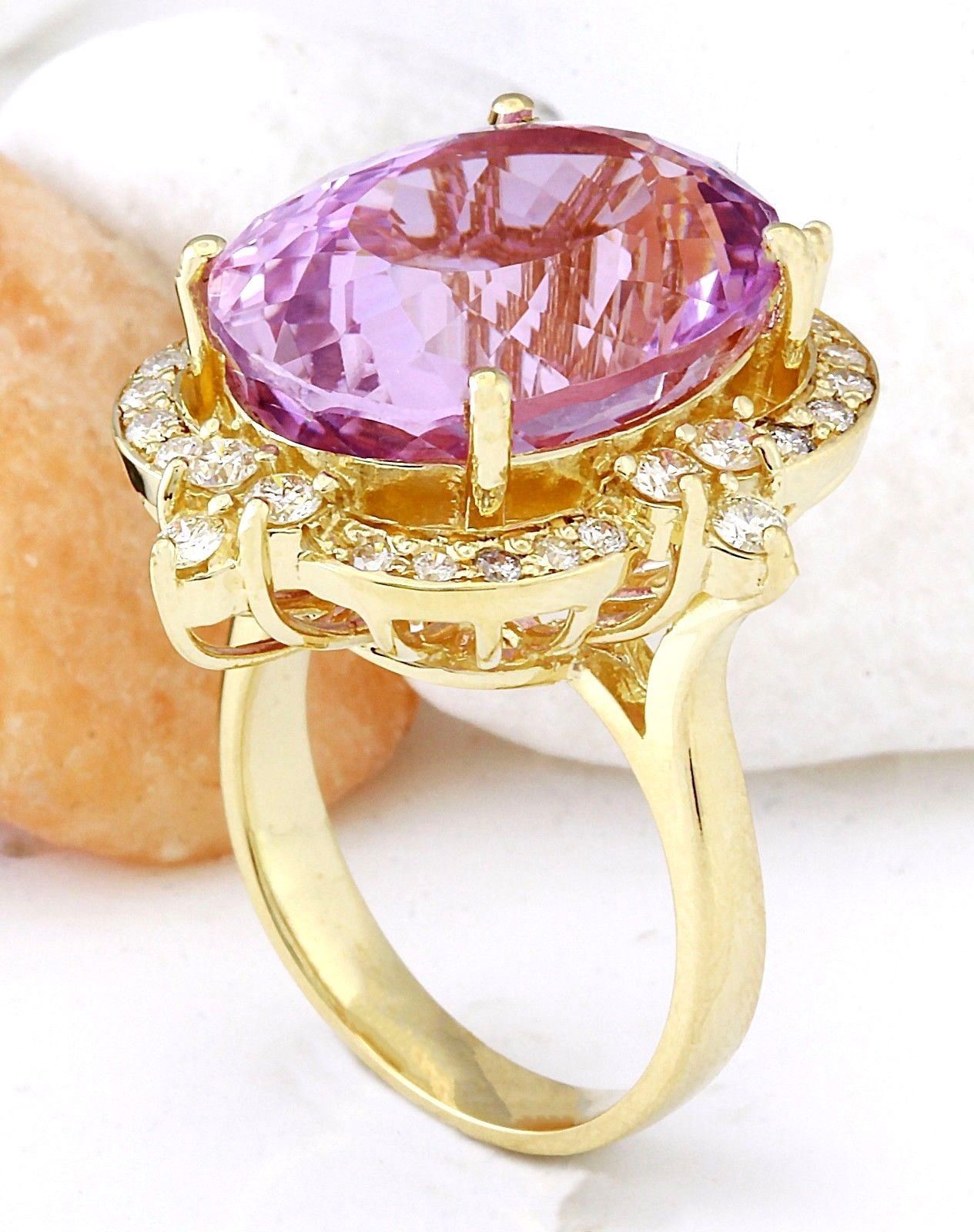 19.89 Carat Natural Kunzite 18K Solid Yellow Gold Diamond Ring