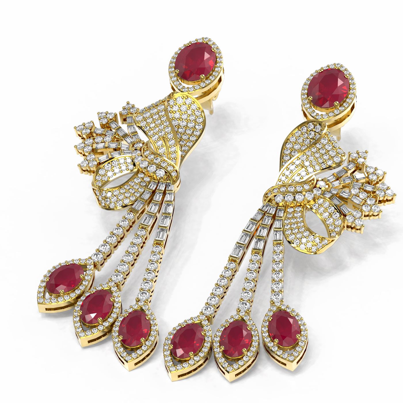 REF-889A3N - SKU: 56146 ---- 19.89 ctw Ruby & Diamond Earrings 18K Yellow Gold