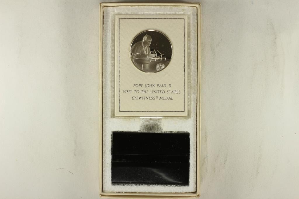 JOHN PAUL II VISIT TO THE UNITED STATES EYEWITNESS MEDAL BY THE FRANKLIN MINT, WITH STAND