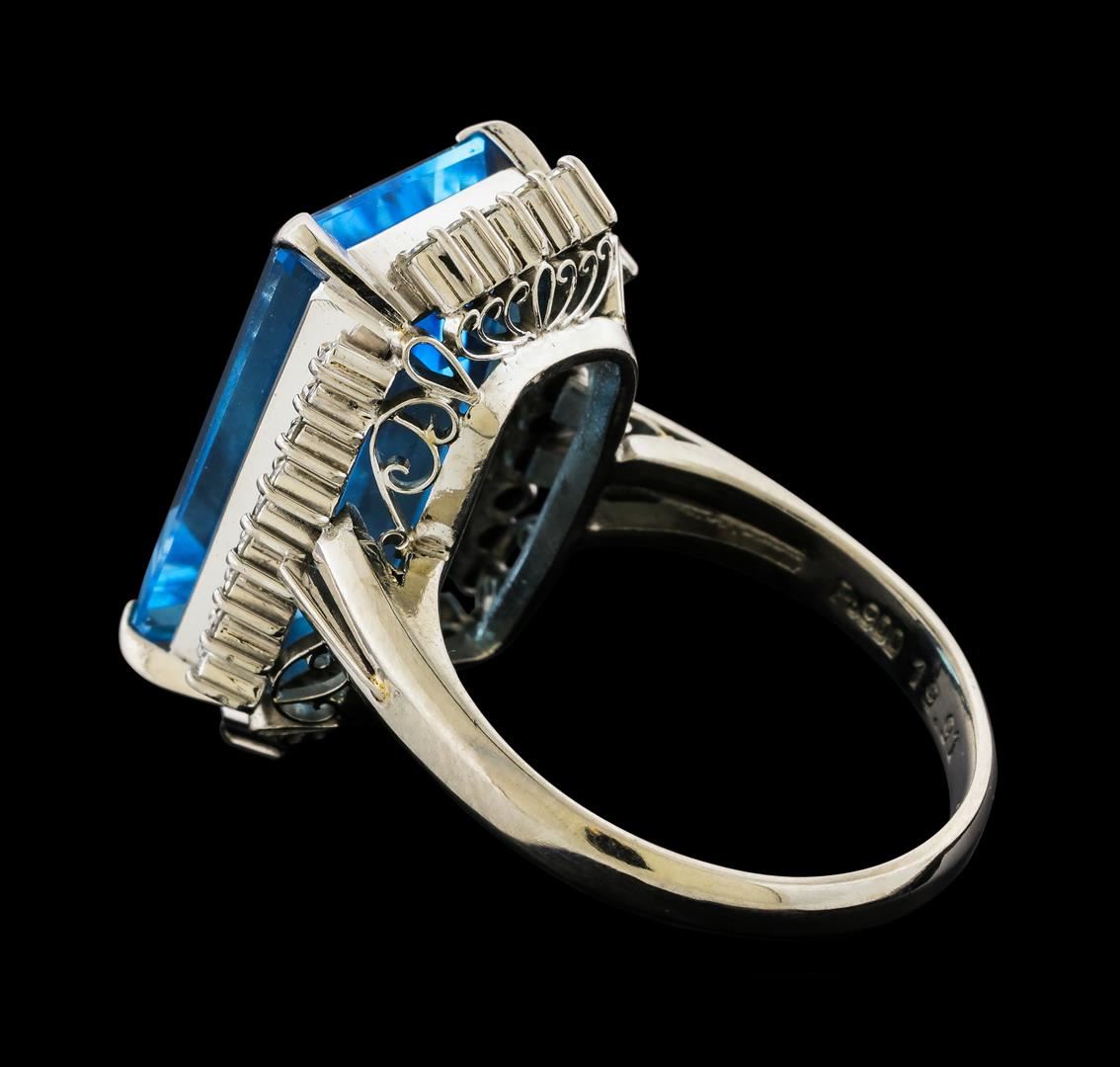 One ring featuring: Platinum containing Blue Topaz with a total weight of 19.91ct and Diamonds with a total weight of 0.54ct. Total Weight of Ring: 16.8 grams.