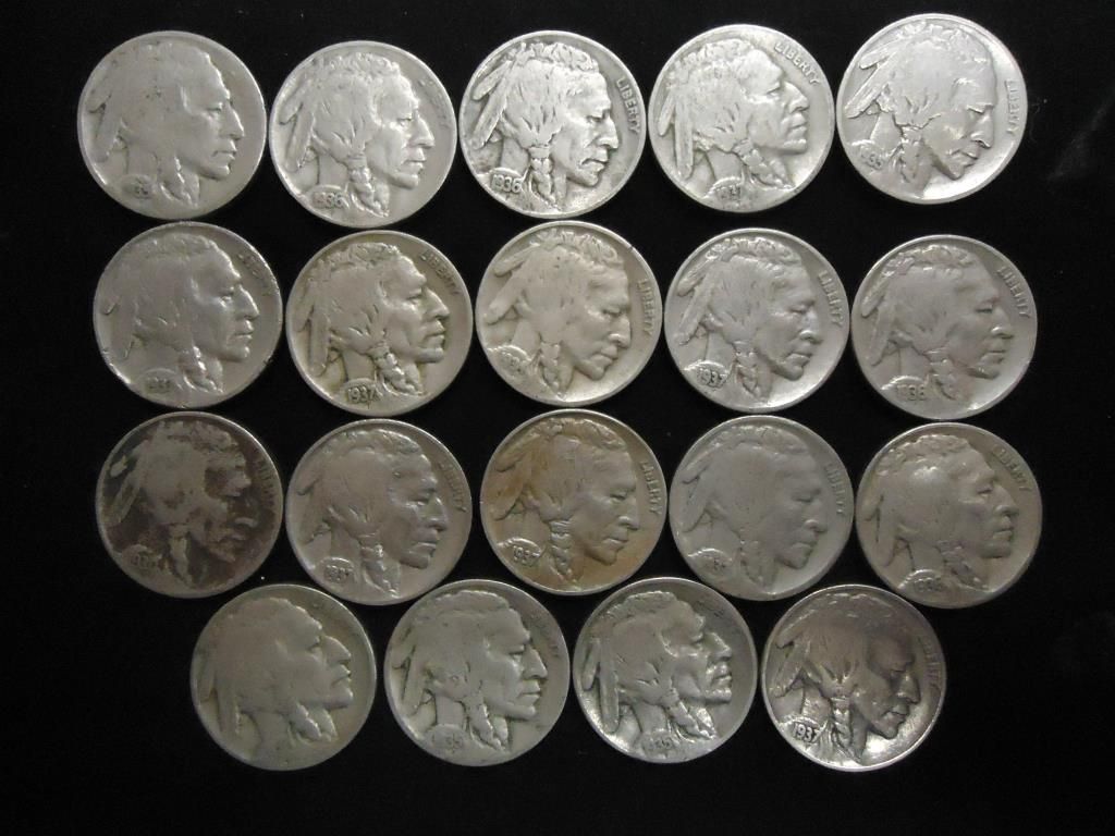 19 ASSORTED FULL DATE 1930'S BUFFALO NICKELS
