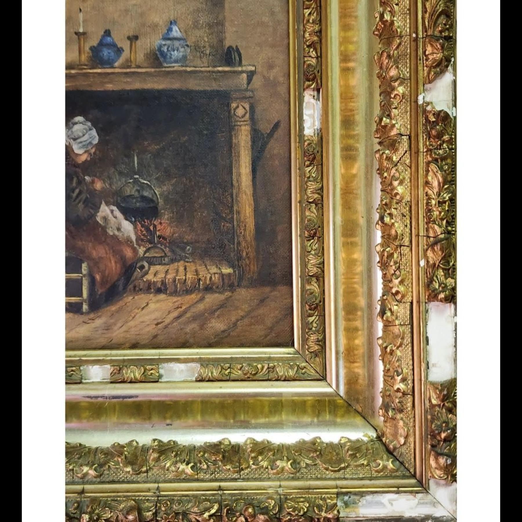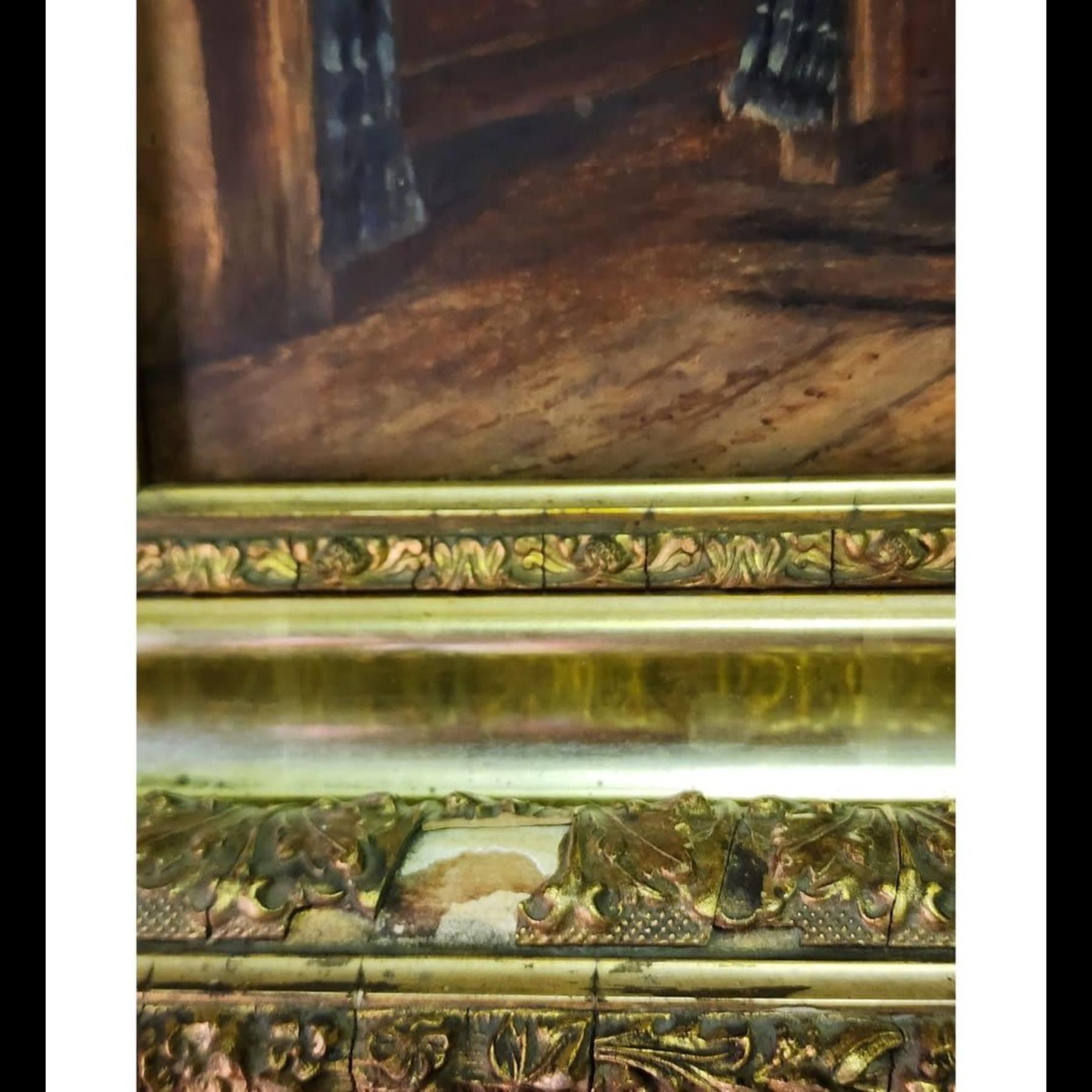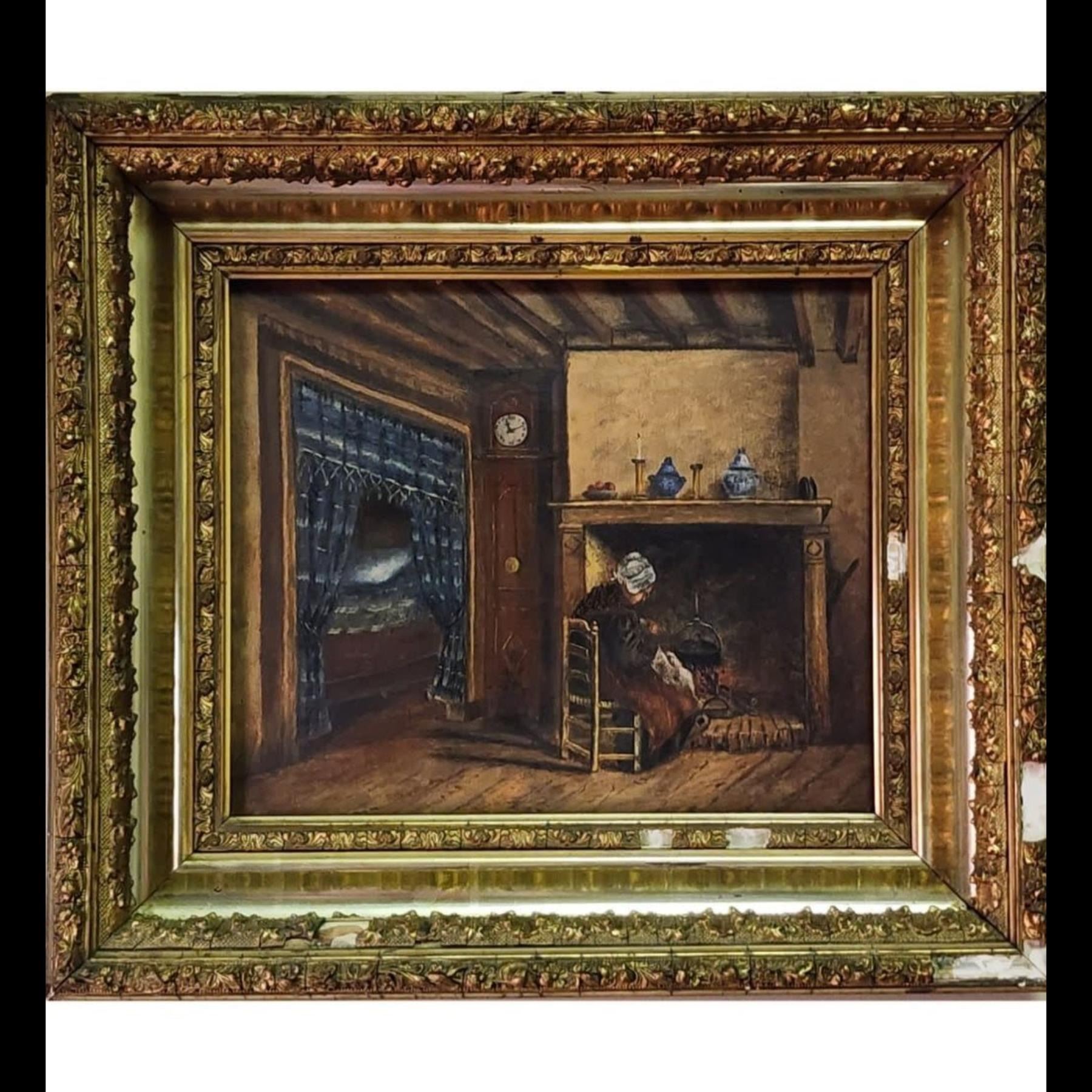 19 C Interior Painting In The Circle Of James Whistler. Frame Measure 16" x 18", Sight 10" x 12". James Abbott McNeill Whistler (1834-1903) was active/lived in Massachusetts / England, France. James Whistler is known for Figure, landscape, and portrait painting, etching. Painting Was Purchased From An 85-Year-Old Here In Florida Who Purchased As Attributed To This Artist. Label Verso Reads "art department Buckingham Moak and Marklove music and art room. Provenance: One Person Private Estate Central Florida.