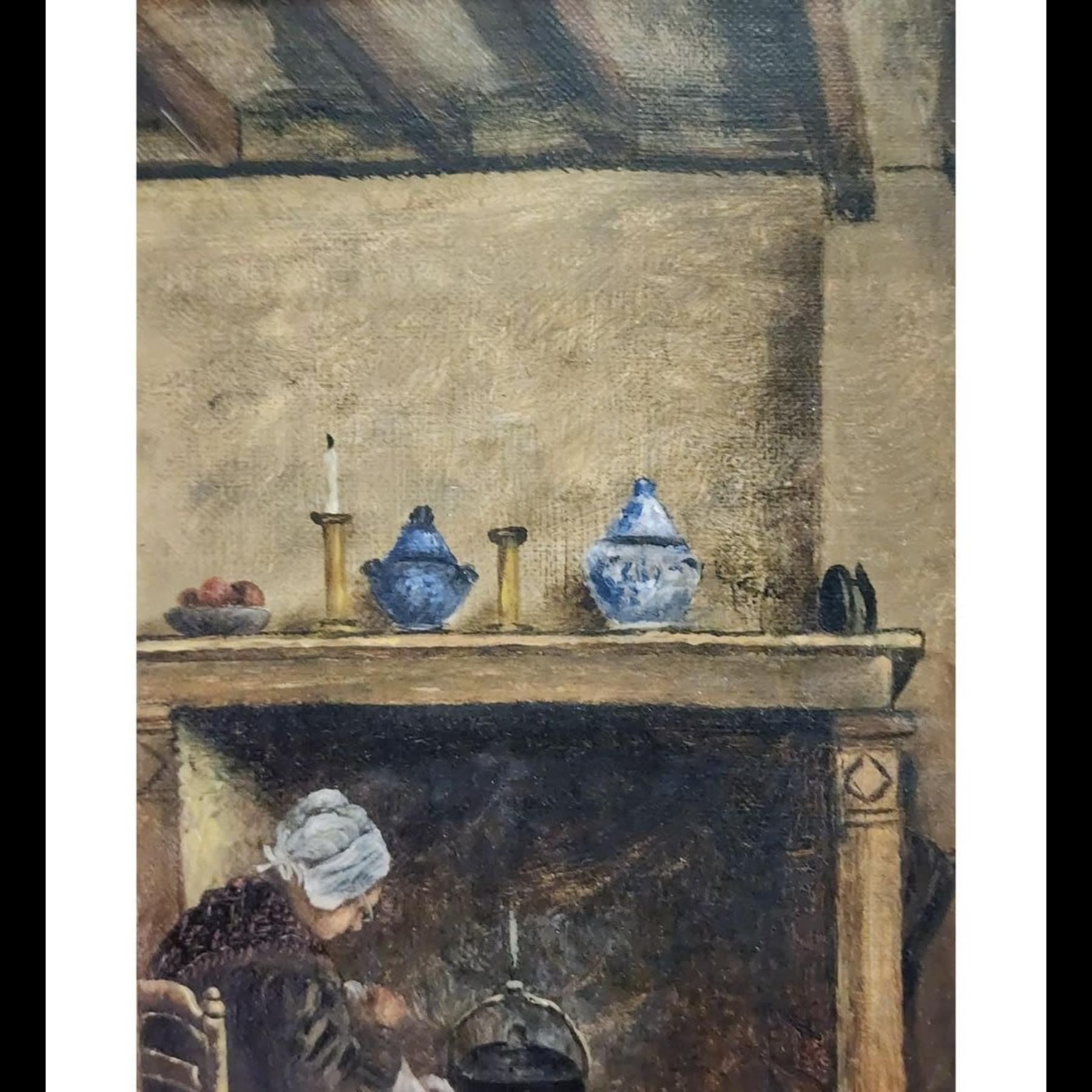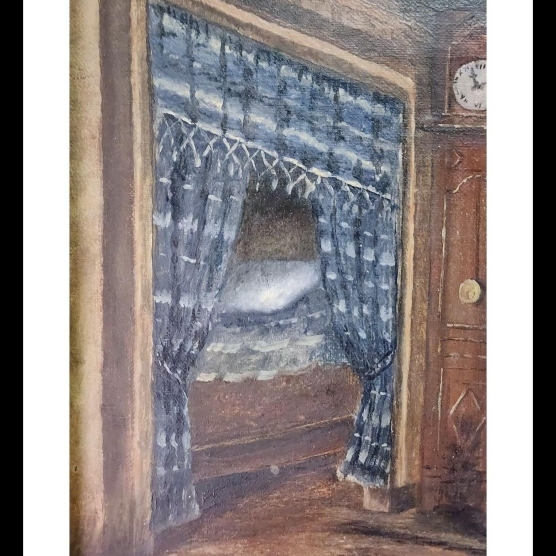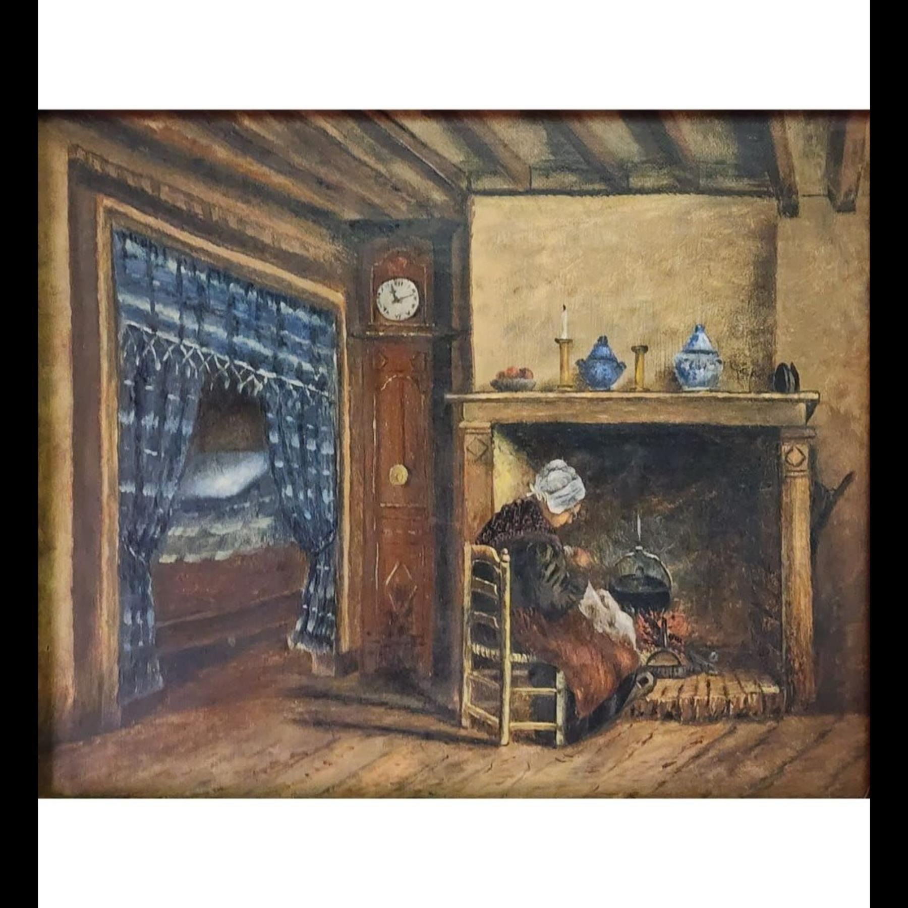 19 C Interior Painting In The Circle Of James Whistler. Frame Measure 16" x 18", Sight 10" x 12". James Abbott McNeill Whistler (1834-1903) was active/lived in Massachusetts / England, France. James Whistler is known for Figure, landscape, and portrait painting, etching. Painting Was Purchased From An 85-Year-Old Here In Florida Who Purchased As Attributed To This Artist. Label Verso Reads "art department Buckingham Moak and Marklove music and art room. Provenance: One Person Private Estate Central Florida.