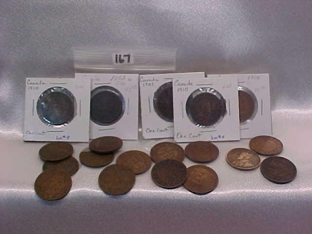 19 Canadian Large Cents, VG-VF: 1882H, 2-01, 2-06, 07, 08, 09, 3-10, 11, 12, 4-13, 14, 20