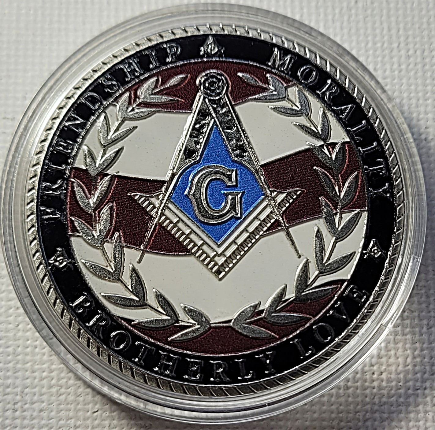 WHITE & BLUE ENAMEL FREE MASONS TOKEN. COLLECTIBLE