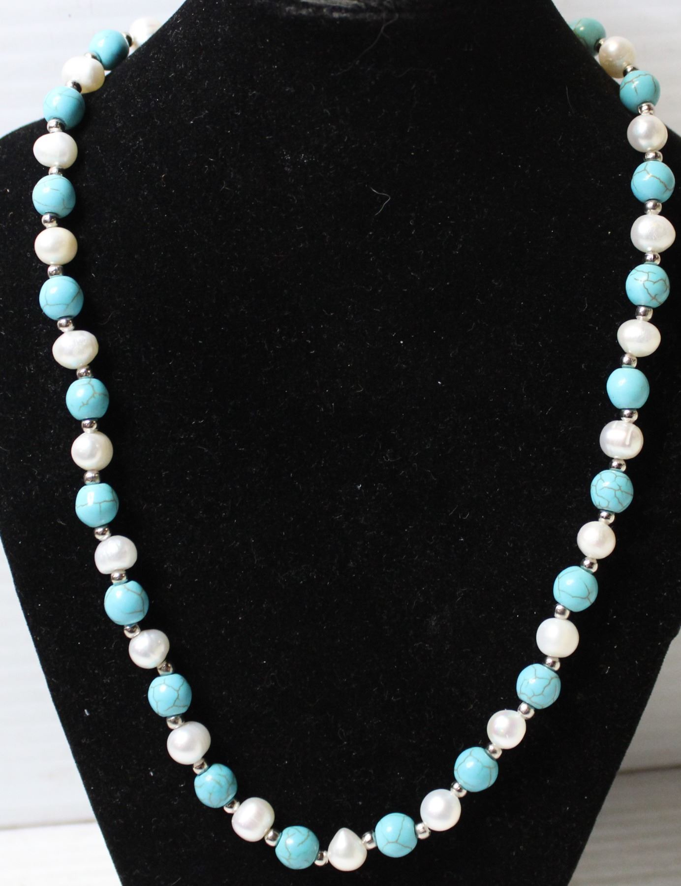 #19-FRESH WATER PEARL/BLUE TOURQUOISE NECKLACE