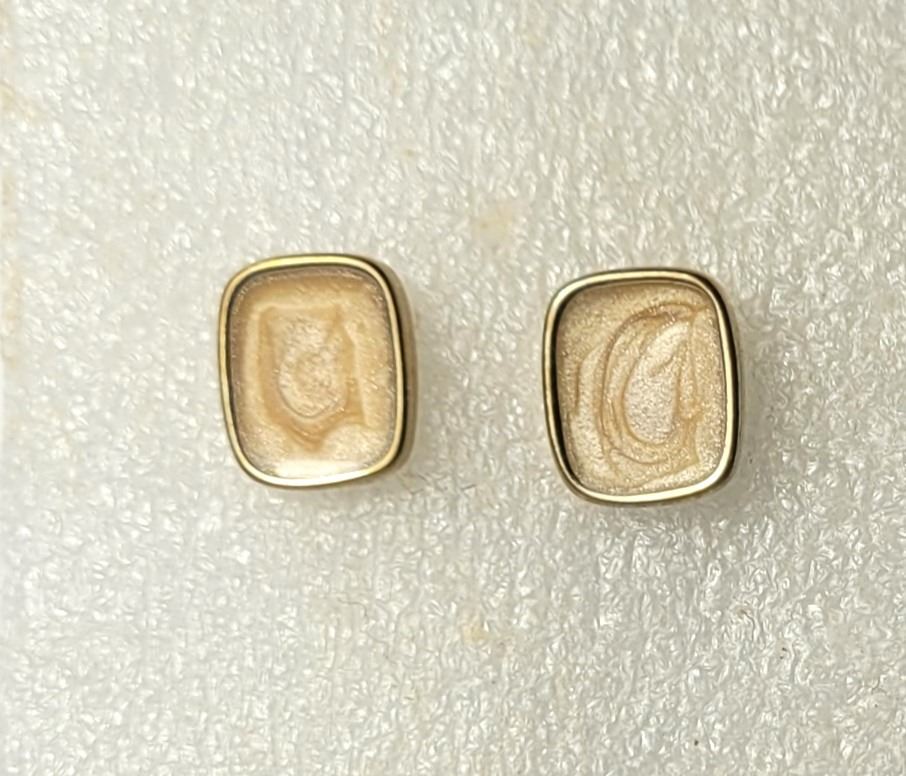 19) GOLD TONE WITH CREAMY, SWIRLY ENAMEL STUD