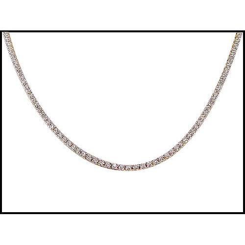 This 18K yellow gold necklace is set with 208 full cut diamonds that have a combined weight of 2.45 carats, yet look like more. The diamonds are beautifully set in the 19" (480mm) necklace that lays beautifully on the neck. The color is nice, and the small size of the stones tends to veil inclusions. A TREASURE!! Was failrly priced for only $2500, yet now to be yours for much less than half of that.