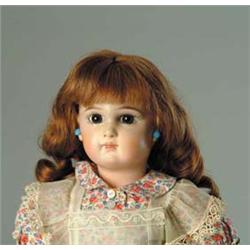 Lot 252: 19" INCISED DEPOSE JUMEAU #8. A reasonable doll for a collector who cannot afford to purchase a perfect example. This Bebe has amber paperweight eyes on a straight wristed fully jointed and marked Jumeau body. The doll has had extensive restoration to the head, but still retains original spring connecting the head to the torso. The doll is wearing newer style clothes and wig. CONDITION: Restoration primarily on forehead and bridge of nose. 1-899 JL66
