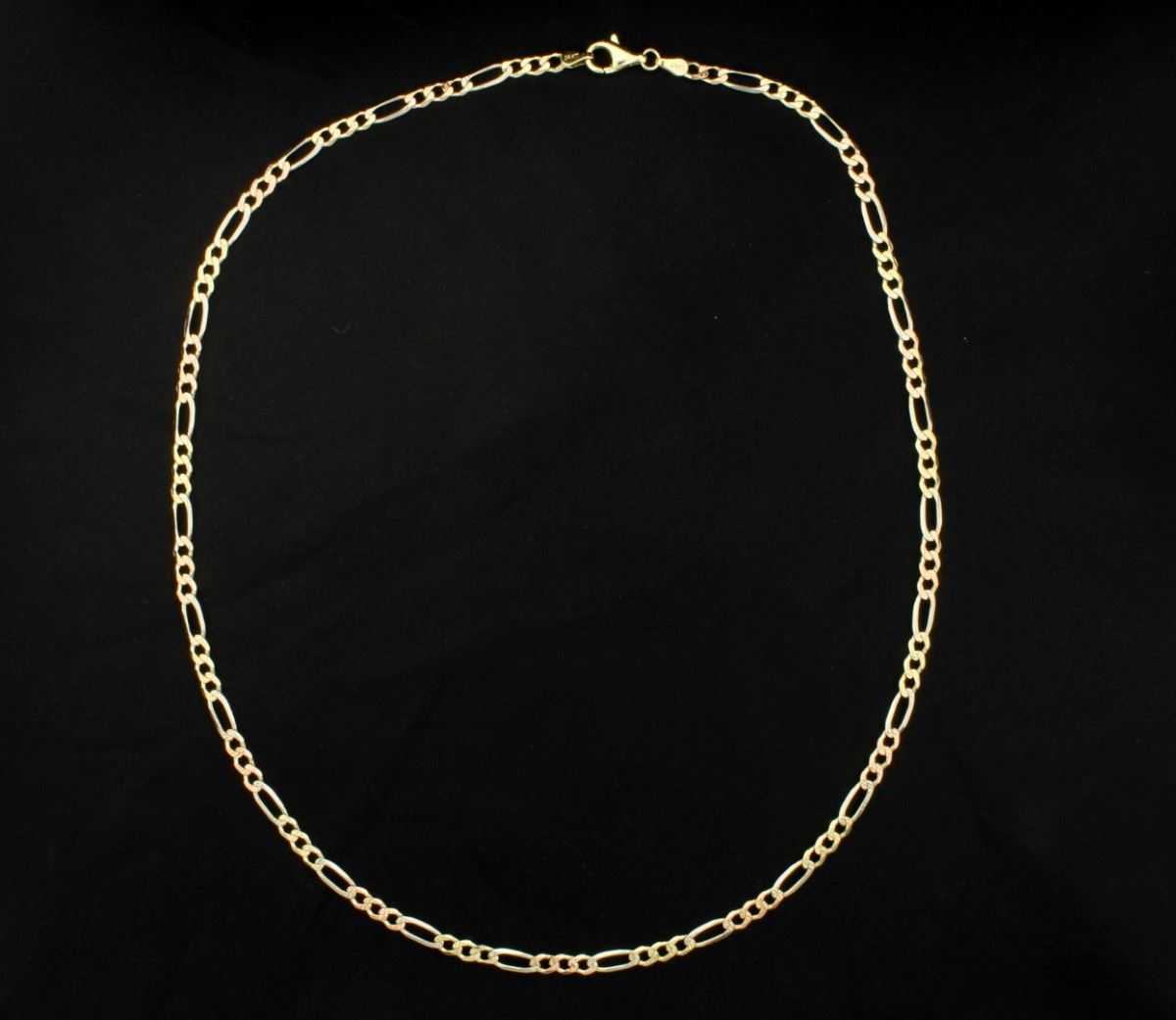 The chain is 14K yellow, Rose, & white gold and is 3.8mm wide. 10.5g