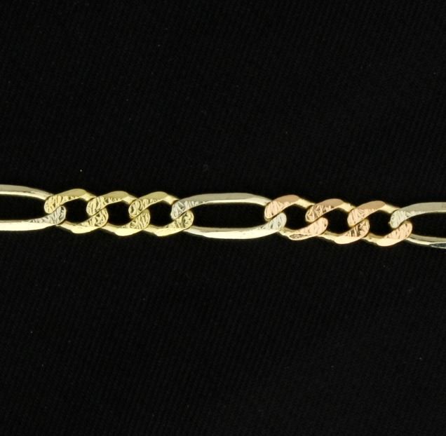 19 Inch Italian Made Rose, White, and Yellow Figaro Chain