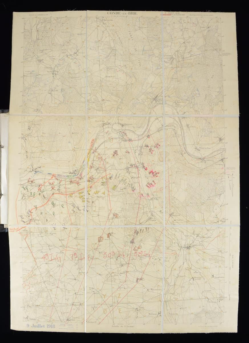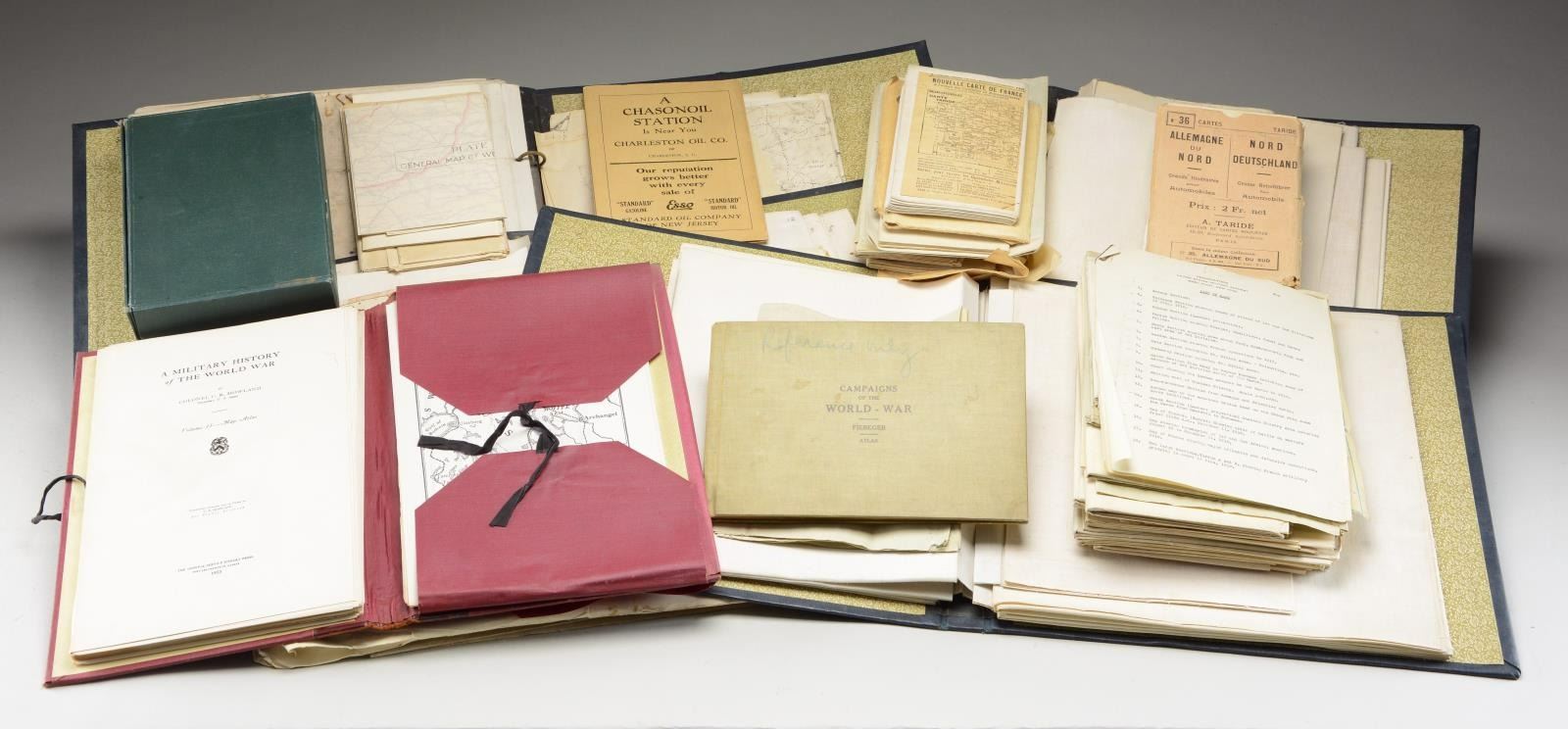 GENERAL FRED SLADEN: over 50 maps, most bound in binders, many backed with fabric and hinged for use in the field, most are folio, the largest about 3'x5'. Most maps 1915-1920, including 15 detailed large maps of Marne region showing annotated troop movements and artillery positions of Sladen's 5th Infantry brigade July 2018. Other maps show various areas of Europe, China and the Philippines, and more. CONDITION: mostly good to very good overall. (02-17895-19/JS). $2,000-4,000.