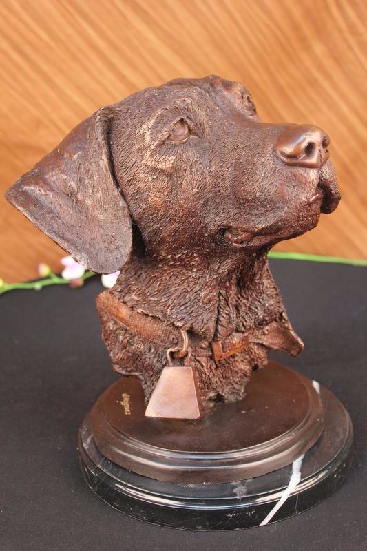 This Is An Adorably Accurate Bust Of A Young Retriever Dog. These Are Energetic, Lovable, Well-Mannered, Intelligent Dogs With A Great Charm. They Are Easily Trained, And Always Patient And Gentle With Children. Charming, Devoted And Self-Assured, They Are A Popular Family Dog. This One Stands Patiently And Looks Up Excited With A Tilt To His Head. Handmade Using The "Lost Wax Method" With A Two Tone Brown Patina And Is Mounted Atop A Black Marble Base. Bronze Dimensions With Marble Base: Height 12 X Width 11 inches. Weight: 19 Lbs. This Is Not An Original Of His Work But A Recent Reproduction.