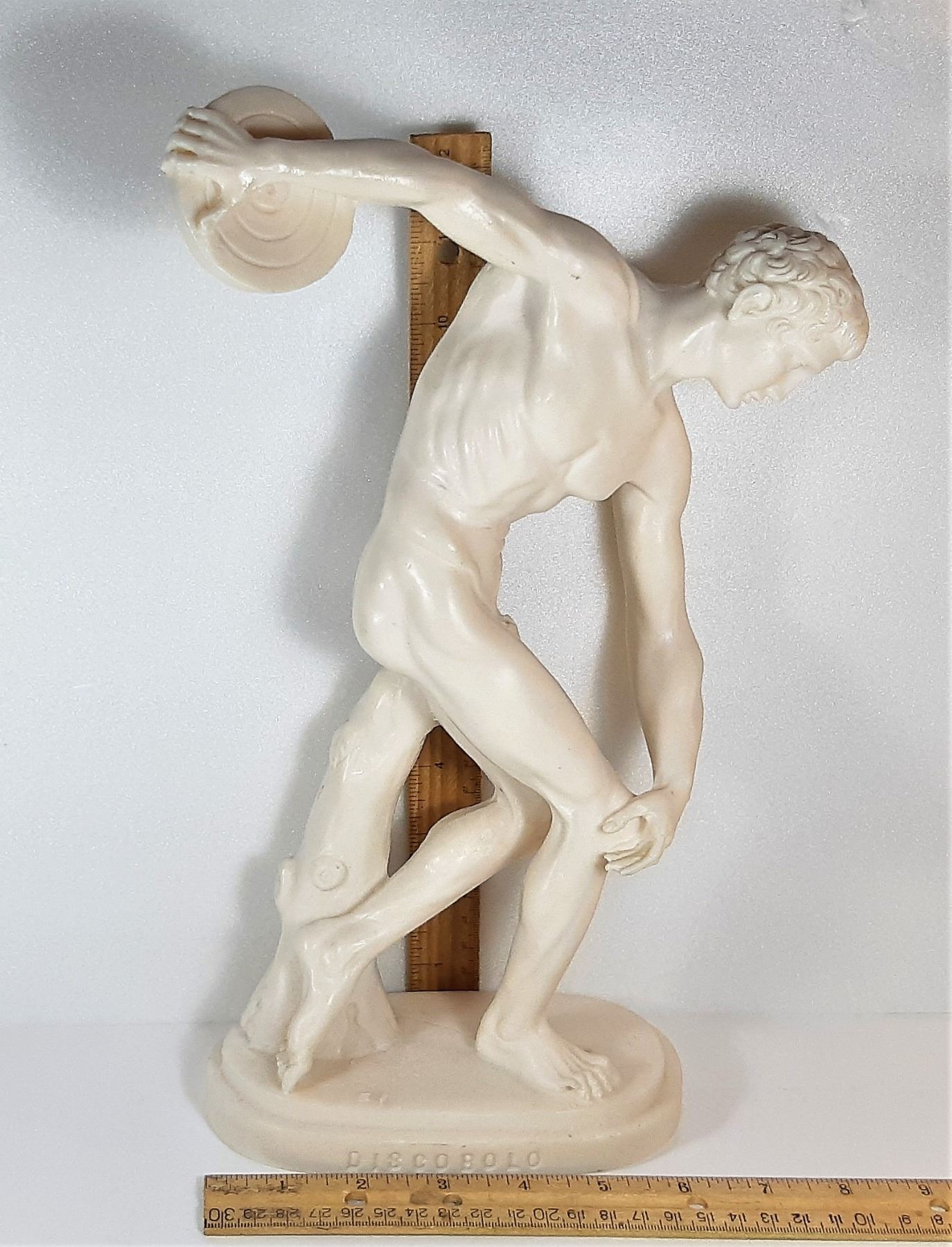 ANCIENT GREEK OLYMPIC DISCUS THROWER, STANDS 13.5" TALL, BY SANTINI. COLLECTIBLES