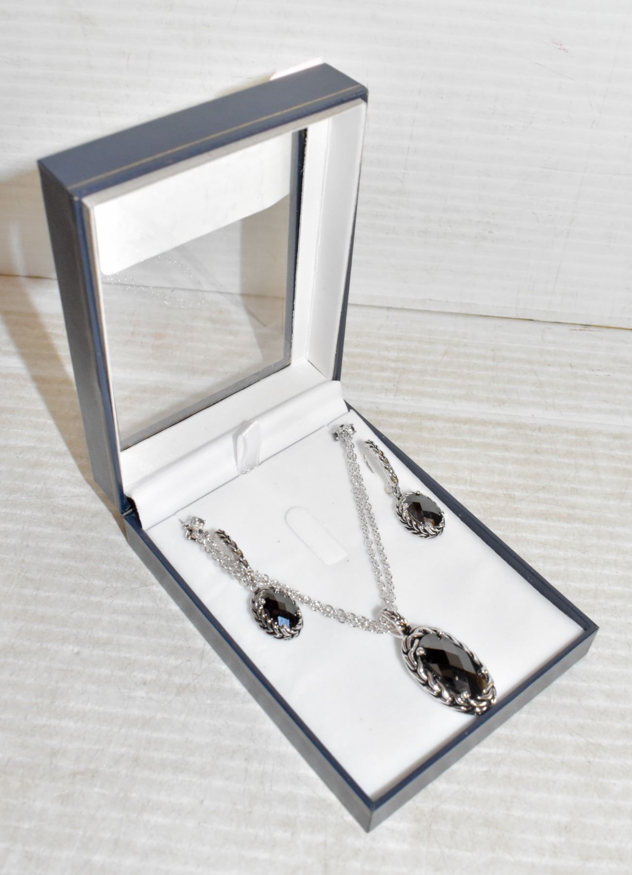 19" NECKLACE W/ PENDANT & MATCHING DROP EARRINGS