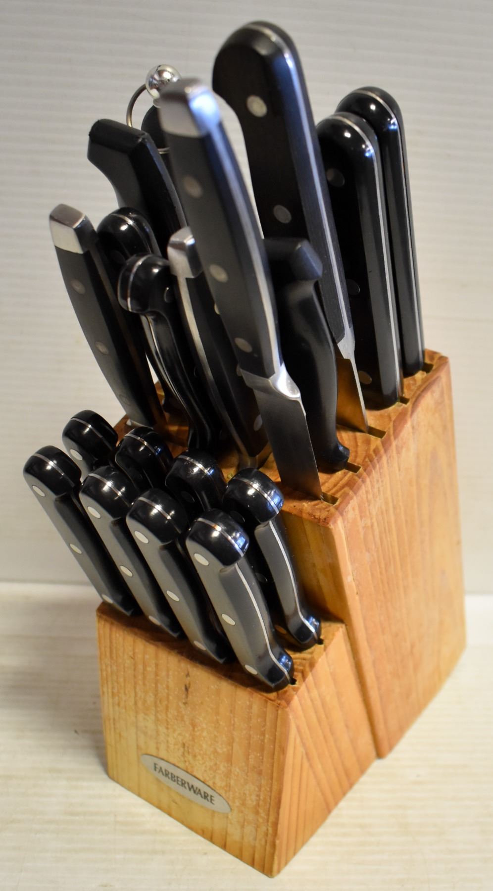 19 PCS OF KITCHEN SORTED KNIVES SET BUTCHER WOODED BLOCK, UNIVERSAL ORGANIZER FOR KITCHEN KNIVES