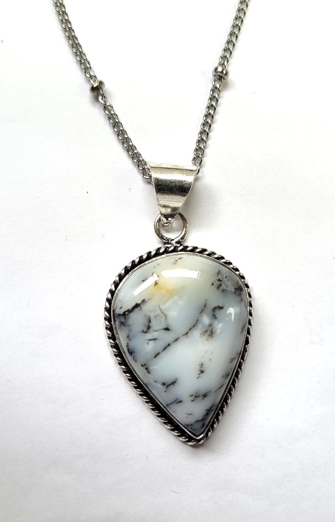 NATURAL DENDRITIC OPAL PENDANT ON 18" CHAIN. JEWELERY